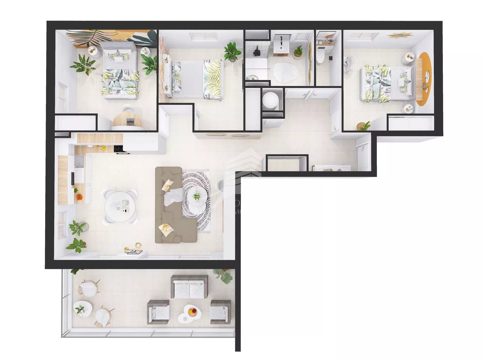 Ce 4 pièces moderne bénéficie d'une excellente luminosité grâce à ses grandes baies vitrées donnant sur la terrasse et le jardin de plus de 300M². La cuisine ouverte sur le séjour offre un espace convivial pour recevoir vos proches. Les chambres spacieuses avec placard intégré vous offrent tout le confort nécessaire. La salle d'eau est équipée d'une douche et les WC sont séparés pour plus de praticité.