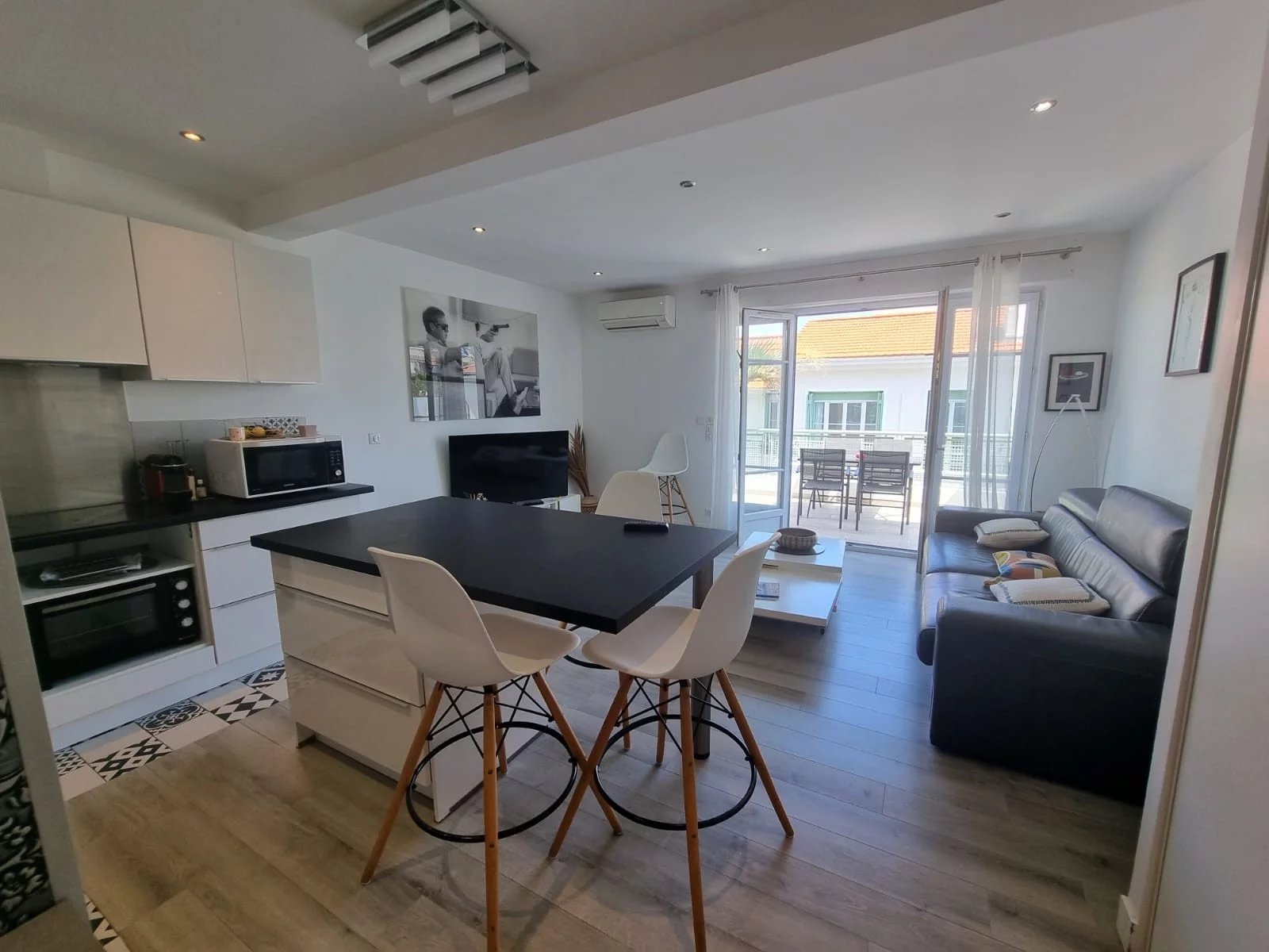 JUAN LES PINS 100M DES PLAGES PLEIN CENTRE SUPERBE F2 ENTIÈREMENT RÉNOVÉ PRESTATIONS LUXES CUISINE ÉQUIPÉE CLIMATISATION ÉTAGE ÉLEVÉ APERÇU MER TERRASSE PROFONDE POSSIBILIT2 E PARKING SOUS SOL EN SUS