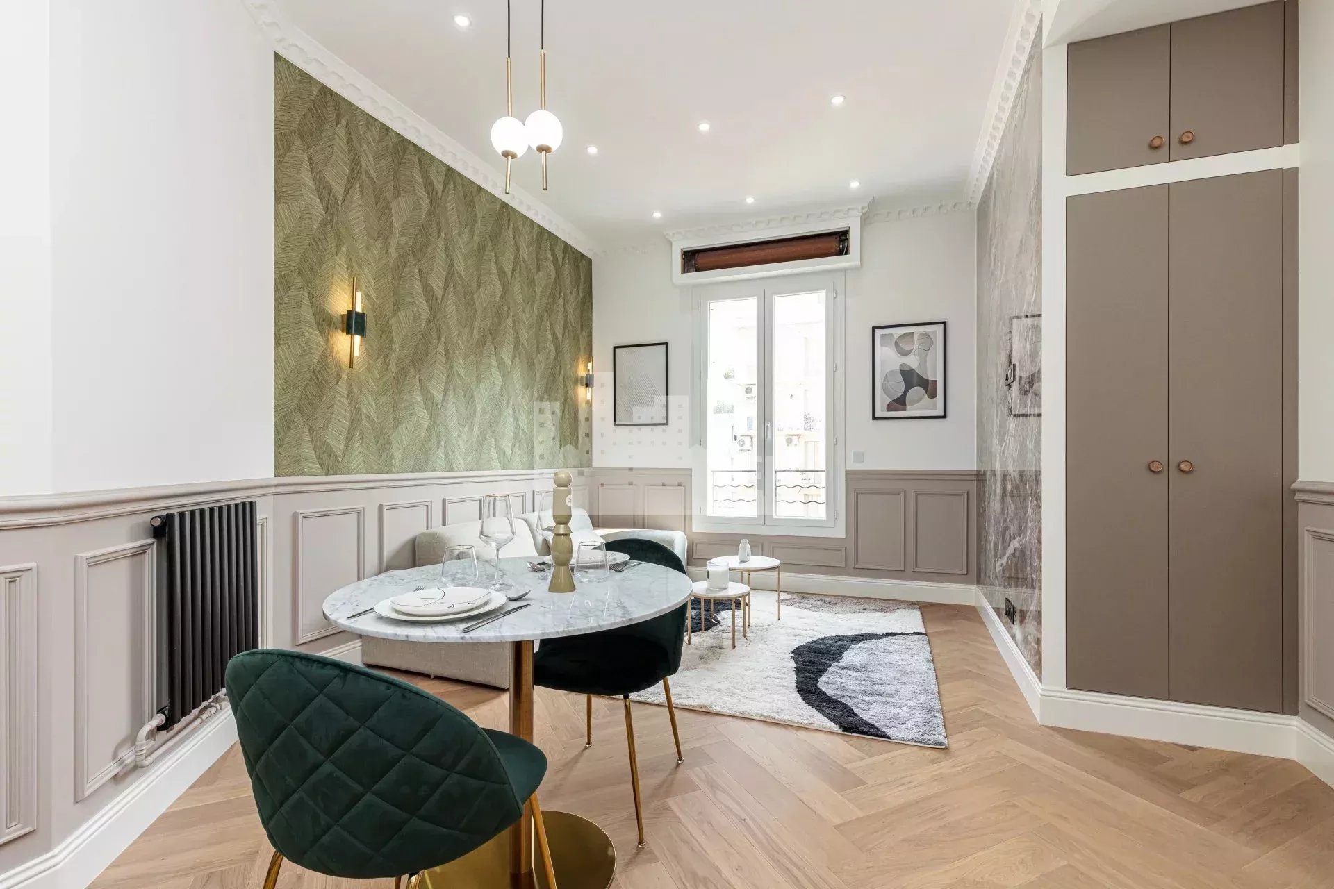 En plein cœur du Carre d'or à proximité des commerces, des transports et a quelque mètre de la Promenade des Anglais. Situé sur la rue de la Buffa, dans un immeuble avec ascenseur au troisième et avant dernier étage. Cet appartement de 40 m² entièrement rénover avec des matériaux de qualité réaliser et décorer (vendu meublé) avec gout par un Architect d'intérieur tout en gardant le charme de l'ancien avec son parquet en bâtons rompus et ses moulures. Ce bien exposé plein Sud et donnant sur une cour intérieur au calme absolu, il se compose d'une entrée avec placard, d'une salle d'eau, d'une magnifique pièce de vie, d'une chambre avec rangement donnant sur un balcon et d'un WC individuel. Les charges de copropriété sont de 186€/mois en tout collectif (eau froide, eau chaude et chauffage). La taxe foncière 2021 est de 862 €.