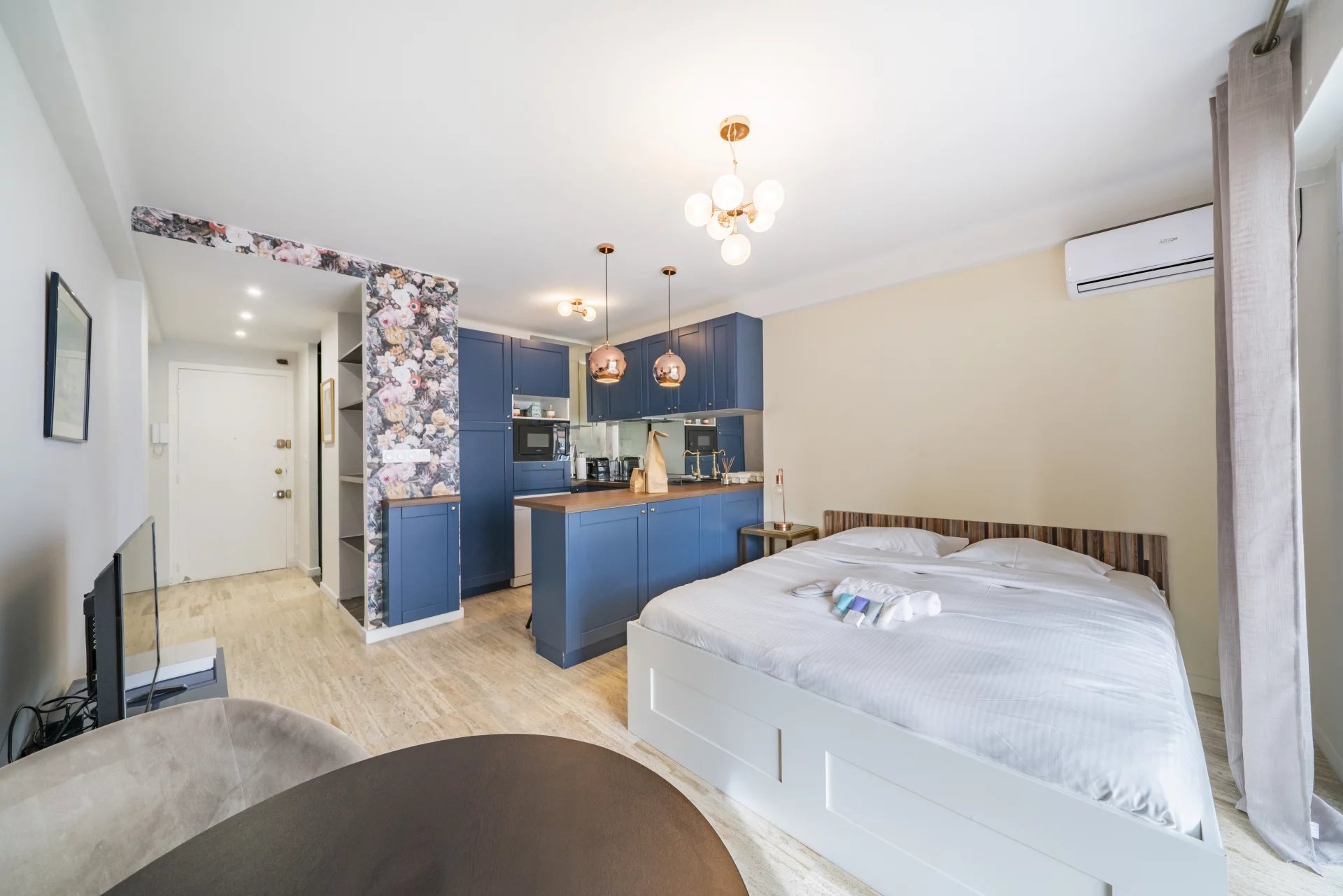 Centre /Rue d'antibes - Situé au coeur de Cannes dans une résidence soignée avec ascenseur, cet appartement de 30m2 avec terrasse plein sud au calme absolu. Se compose d'une entrée, d'une cuisine américaine équipée, d'un salon et coin chambre, d'une salle de bain avec toilette. Cet appartement est entièrement climatisé et équipé de wifi. Idéal congrès ou vacances.