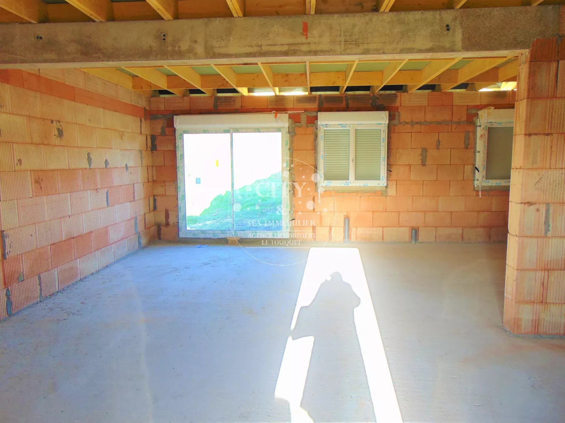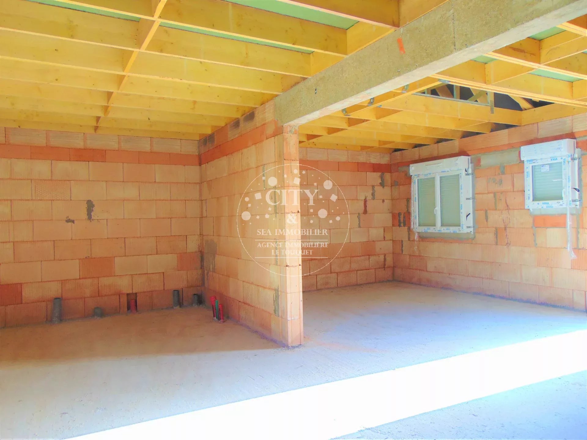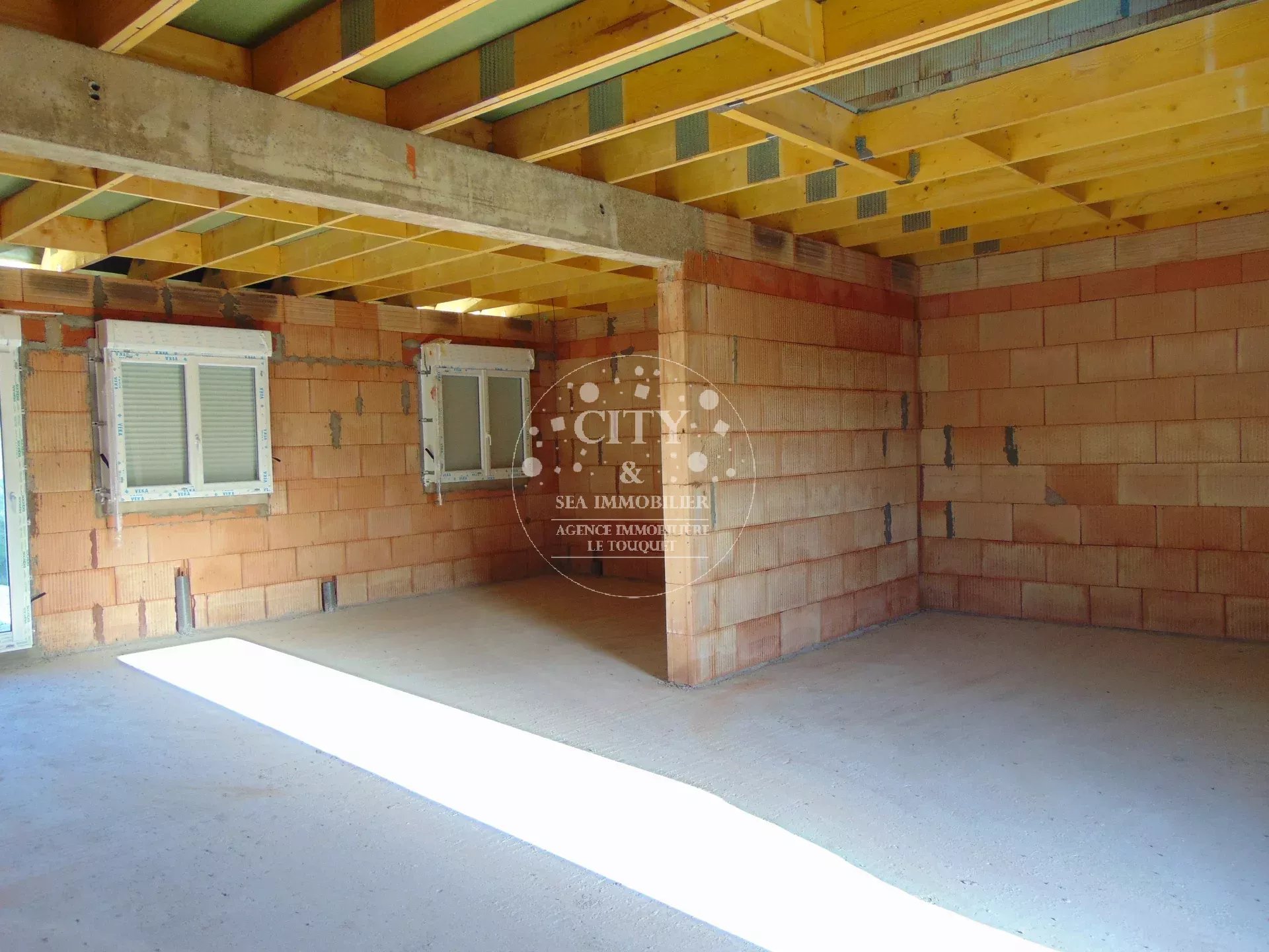 Proche Touquet, Commune de Saint-Aubin, secteur résidentiel, maison neuve de 99,74m² avec carport érigée sur un terrain de 1417m2. FORMULE CLOS COUVERT Prestations comprises : Gros oeuvre - charpente - couverture - menuiseries extérieures - enduit projeté + carport + terrain borné viabilisé Eau, EDF, Orange et Etude assainissement. Postes non compris à réaliser par l'acquéreur : - aménagement intérieur (électricité, plâterie isolation menuiseries intérieures, chape, carrelage, sanitaire plomberie, escalier, peinture, parquet) - poêle à pellets, - chauffage électrique, - VMC, - assainissement autonome Configuration de la maison : Rez-de-chausée : - séjour/salon/cuisine vide : 42.06 m2 - une chambre de 11,51m2 - un cellier :2.79m2 - une salle de bains : 6.07m2 Etage : - palier de 6.46m2 desservant : - 3 chambres (7,68 m2- 10,07 m2 et 11,23m2) - un wc indépendant avec lave-mains Descriptif relatif à la construction sur demande