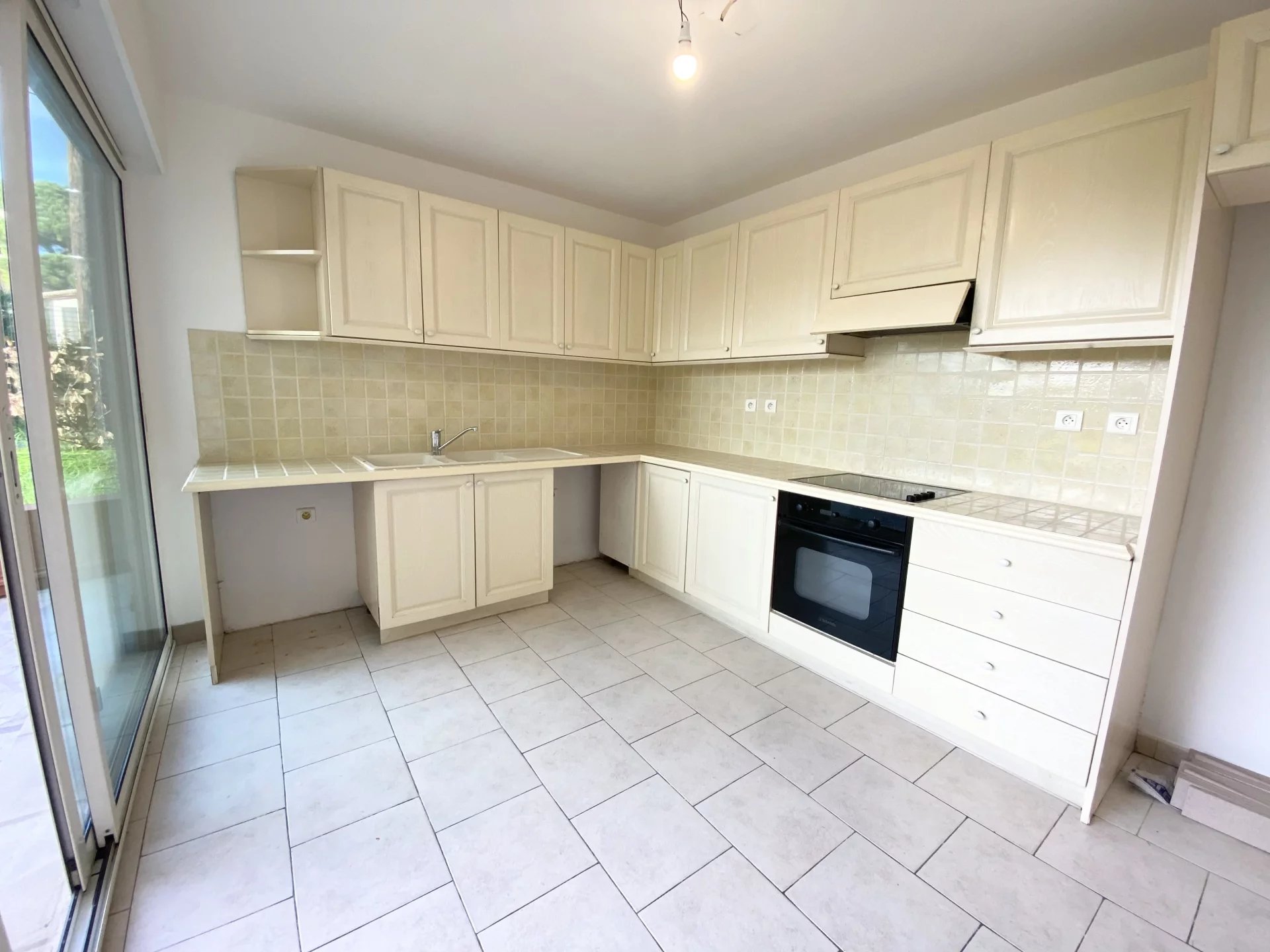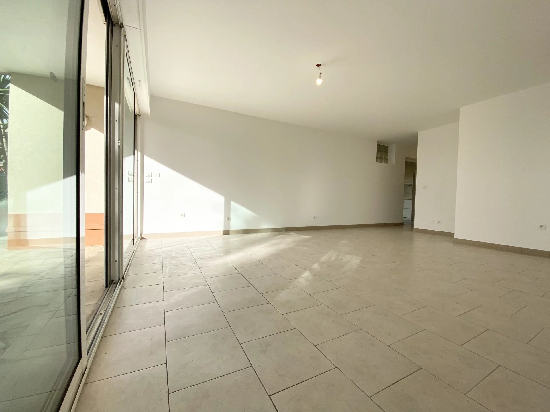 Situé sur la route des Bréguières au Cannet, proche du centre ville, appartement en rez-de-jardin de 95m2. Il est composé d'un hall d'entrée, d'un grand séjour avec 2 doubles baies vitrées, d'une cuisine séparée et équipée. D'une chambre avec salle de bain de 12m2, d'une deuxième chambre de 12m2 également avec sa salle de bain. Et d'une 3eme chambre pouvant faire office de bureau. Le tout donnant sur une terrasse et un jardin. Appartement spacieux et lumineux. 1 grand garage fermé et 1 cave agrémentent ce bien. possibilité d'acheter un deuxième garage. Prix: 455 000€!