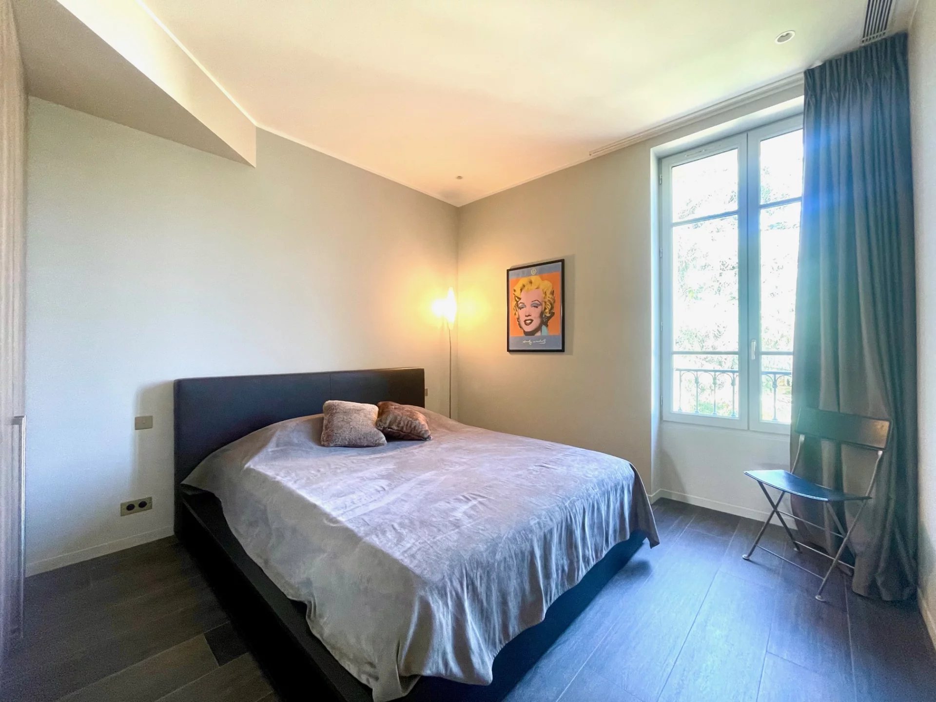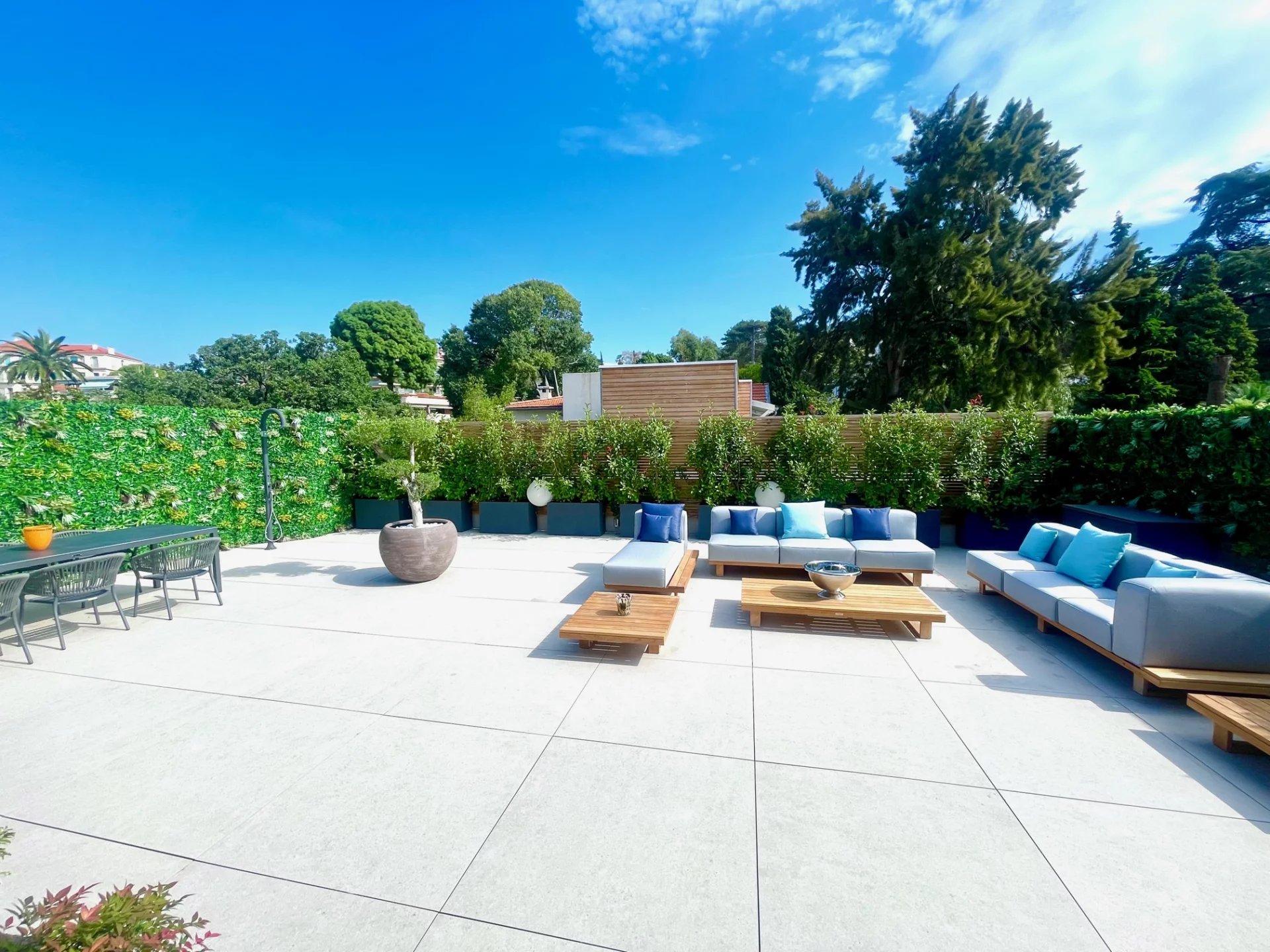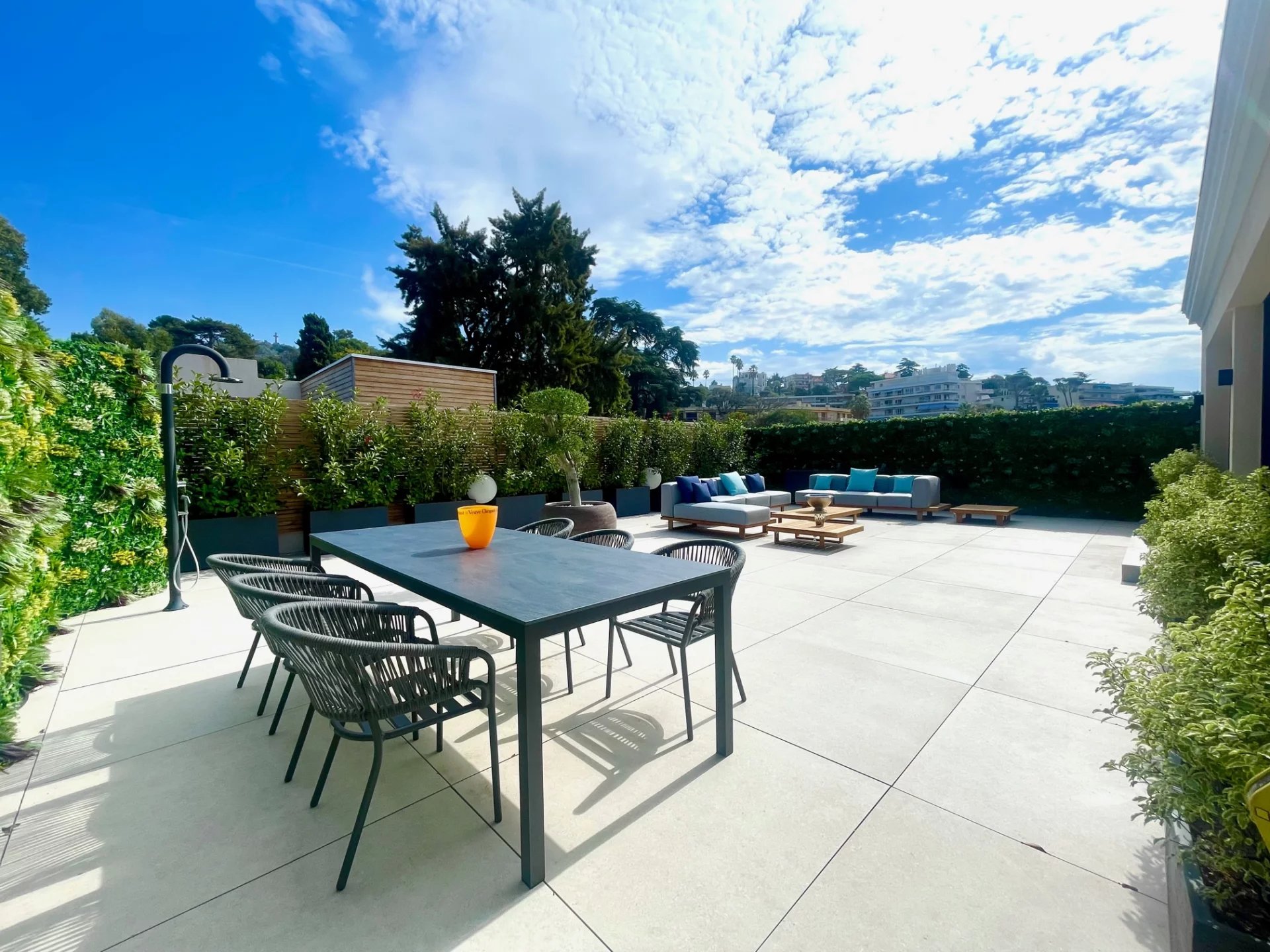 A quelques pas de la rue d'Antibes (3mn ) à pieds . Dans une belle résidence bourgeoise classée ,entièrement rénovée en 2020 avec un parc public devant au calme absolue Rare, appartement exceptionnel en dernier étage (3 em ) entièrement rénové en 2023 avec des matériaux de grandes qualités . Il est composé d'un séjour avec grande baies vitrées une très belle cuisine design ouverte toute équipée en Miel ouverte les 2 donnent sur une magnifique terrasse aménagée sans vis à vis de 120 m² ensoleillé du matin au soir dans un havre de paix entouré de végétation . il dispose de 2 chambres avec placards 2salles de douches avec wc ,1 bureau transformable en chambre avec placards 1 wc invité avec lave mains, buanderie et dispose d'un parking double en sous sol