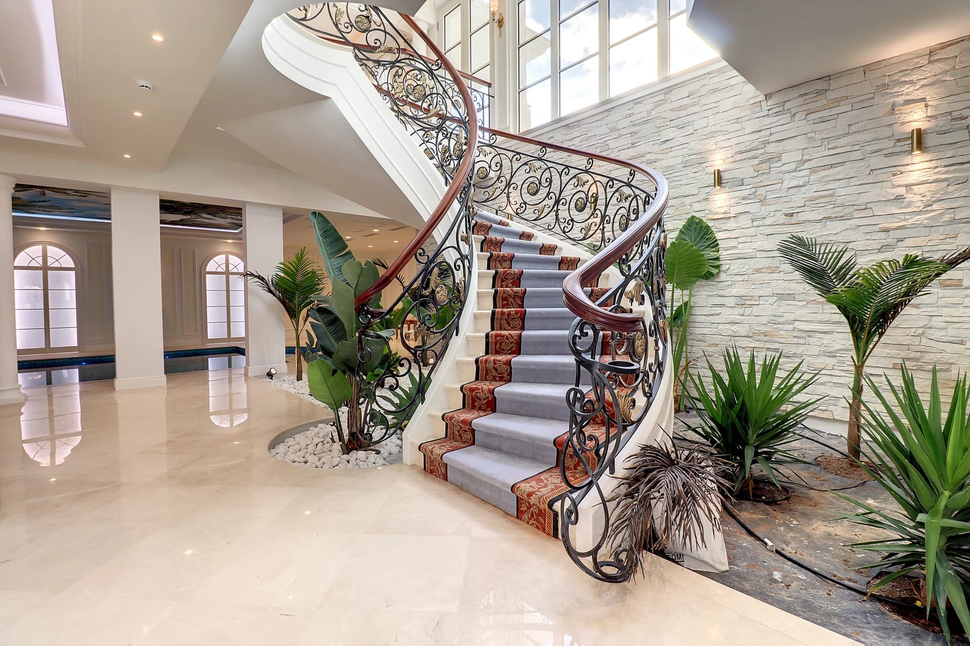 Au niveau inferieur, coin spa détente avec salle de sport, piscine intérieure chauffée, spa, hammam, bar Américain et panic room.