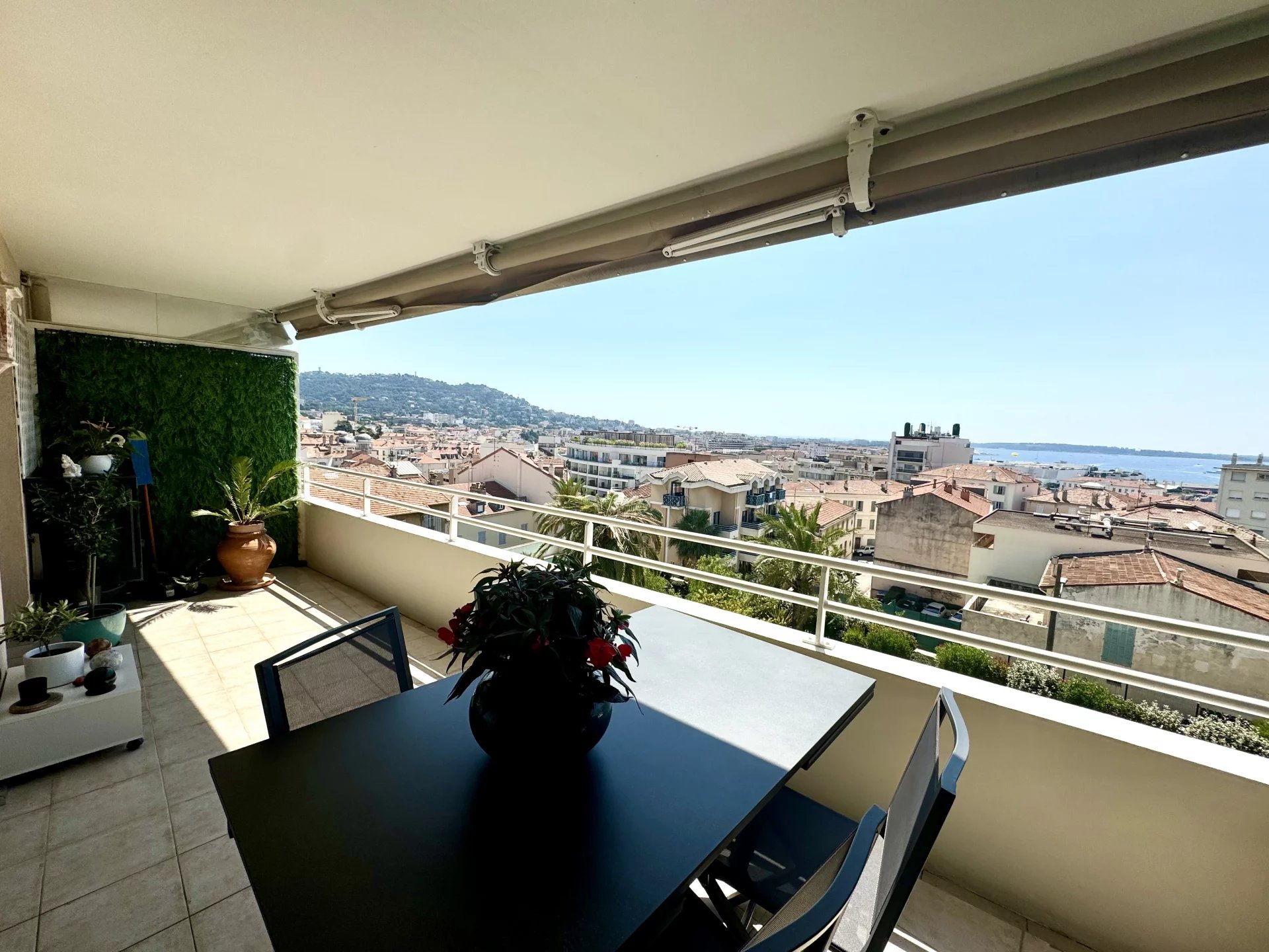 appartement idéalement situé à seulement 400 mètres du Palais des Festivals et de la célèbre Croisette. Ce bien rare, initialement composé de deux pièces, peut aisément être transformé en trois pièces pour répondre à vos besoins. L'appartement vous séduira par sa magnifique terrasse, offrant une vue imprenable sur la mer Méditerranée, un véritable havre de paix pour vos moments de détente. À l'intérieur, vous trouverez un spacieux séjour baigné de lumière, agrémenté d'une cuisine entièrement équipée, parfaite pour les amateurs de gastronomie. La chambre principale, dotée d'une élégante salle de douche, offre confort et intimité. Pour parfaire ce tableau, l'appartement comprend également un garage privé et une cave, vous offrant ainsi des solutions de rangement optimales. Ce bien exceptionnel est une véritable opportunité, alliant emplacement de choix, vue époustouflante et confort moderne. Ne laissez pas passer cette occasion unique de vivre la Côte d'Azur dans toute sa splendeur. Coup de cœur assuré!
