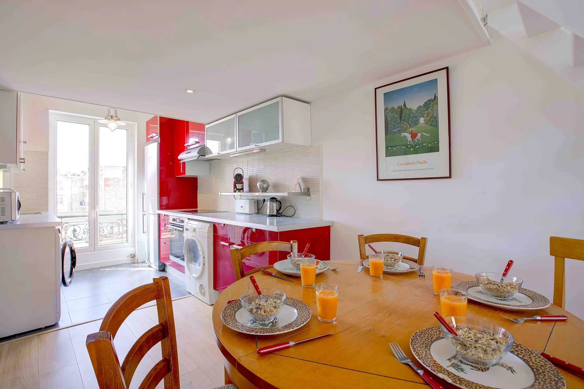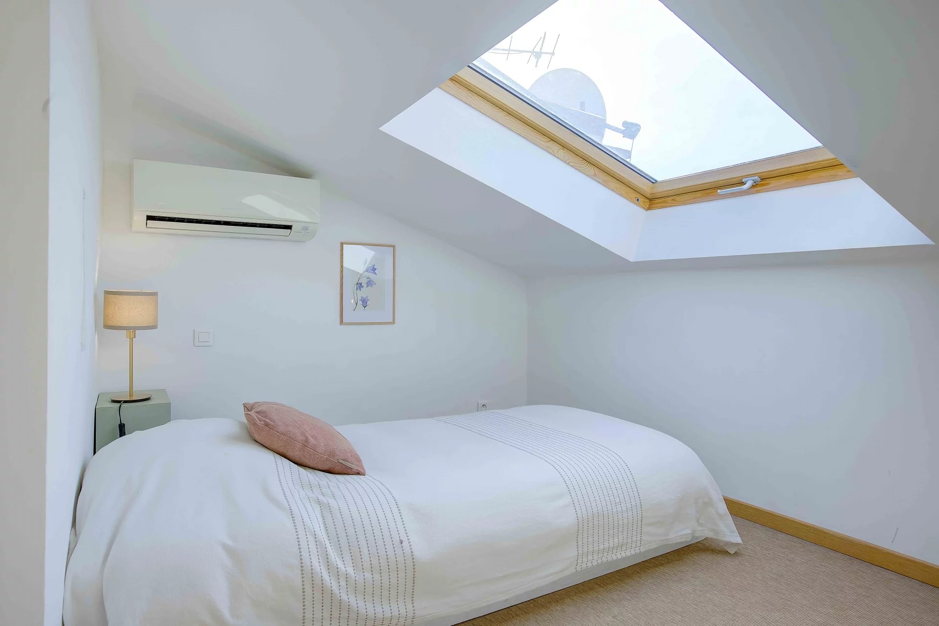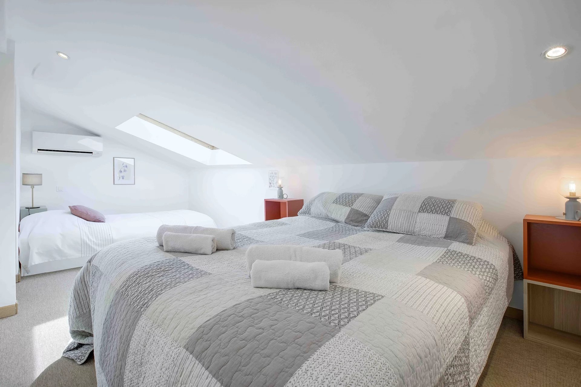 Duplex situé en centre ville En dernier étage sous les toits avec balcon et vue sur la ville 1 chambre avec lit double et lit simple dans la mezzanine 1 lit simple pour une quatrième personne au niveau principal Beau salon avec avec accès au balcon Cuisine entièrement équipée Salle de bains avec baignoire et wc Inclus gratuitement: Serviettes + draps + gel douche + savon Vous pouvez réserver votre séjour sur notre plateforme de réservation via ce lien sécurisé: https://beds24.com/booking2.php?ownerid=33991