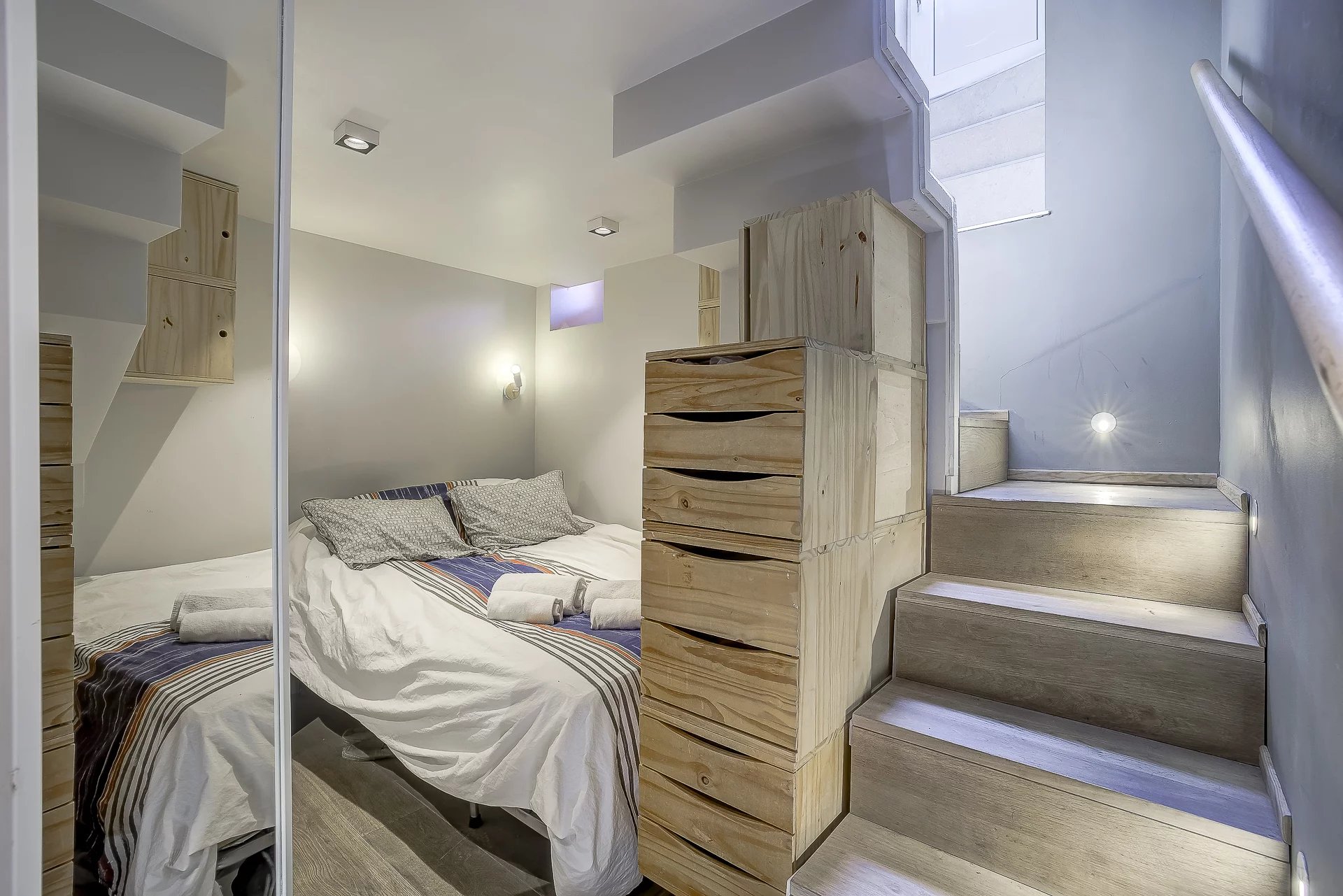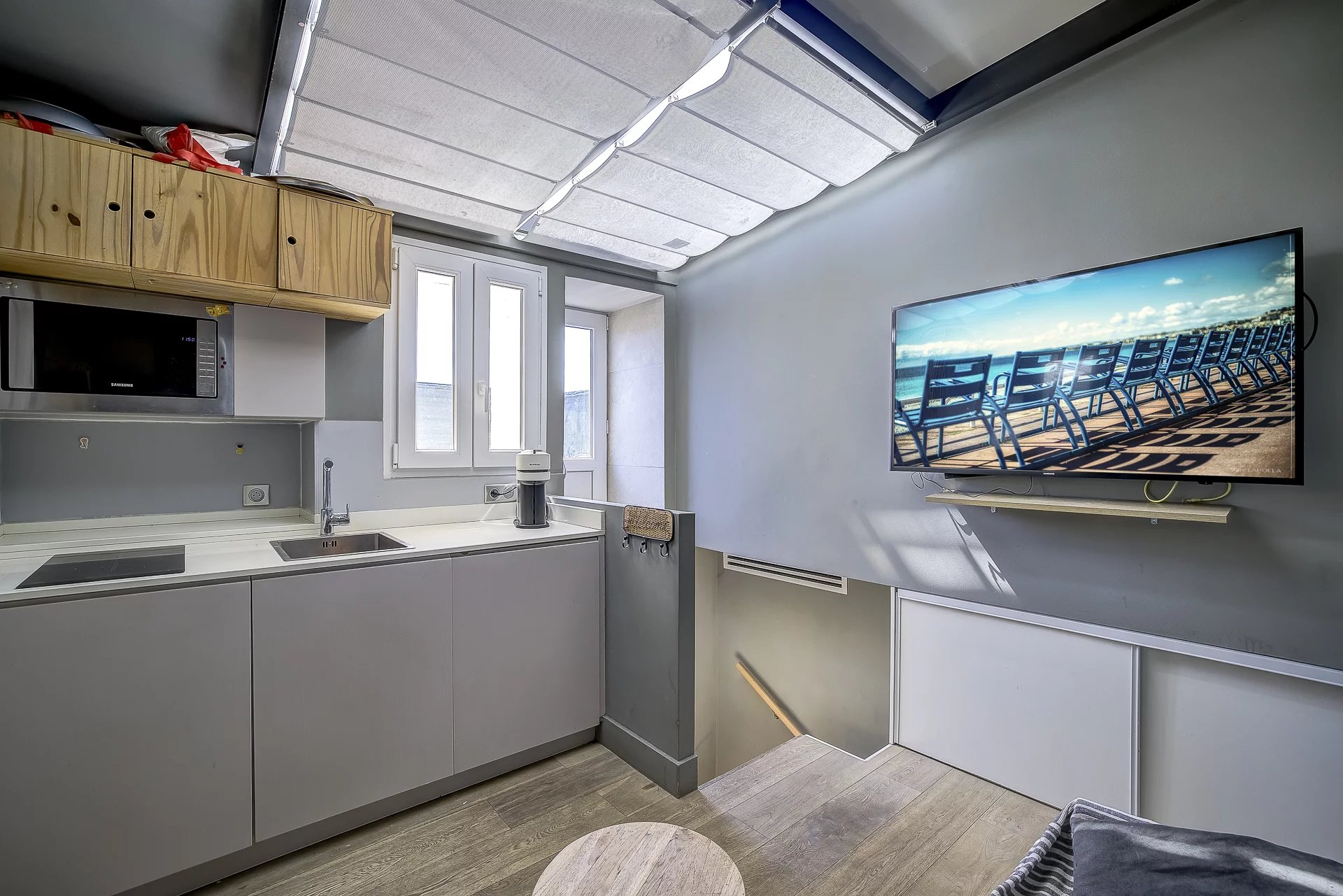 Cozy duplex au calme sur l'avenue Jean Médecin avec terrasse sur le toit Exposition sud avec vue sur Le Château Petit salon avec cuisine équipée et tv 1 chambre tout confort avec lit double, douche et wc Entièrement climatisé Vous pouvez réserver votre séjour sur notre plateforme de réservation via ce lien sécurisé: https://beds24.com/booking2.php?ownerid=33991