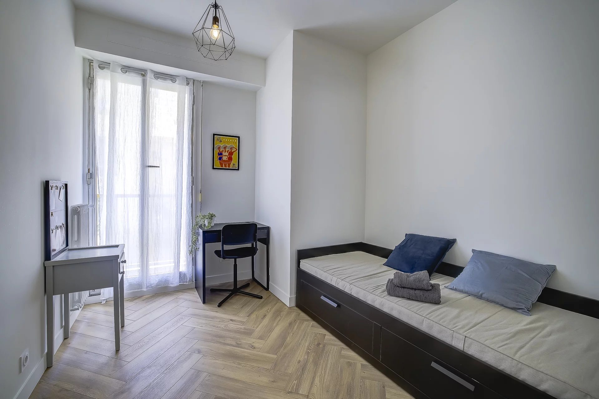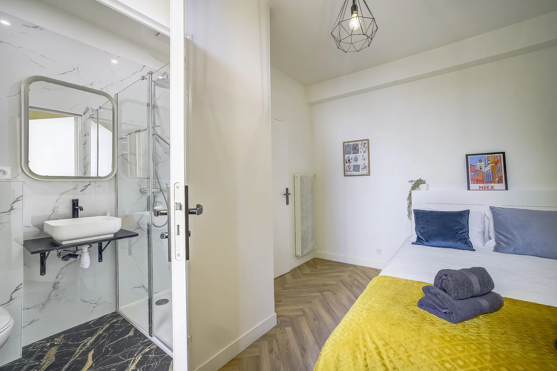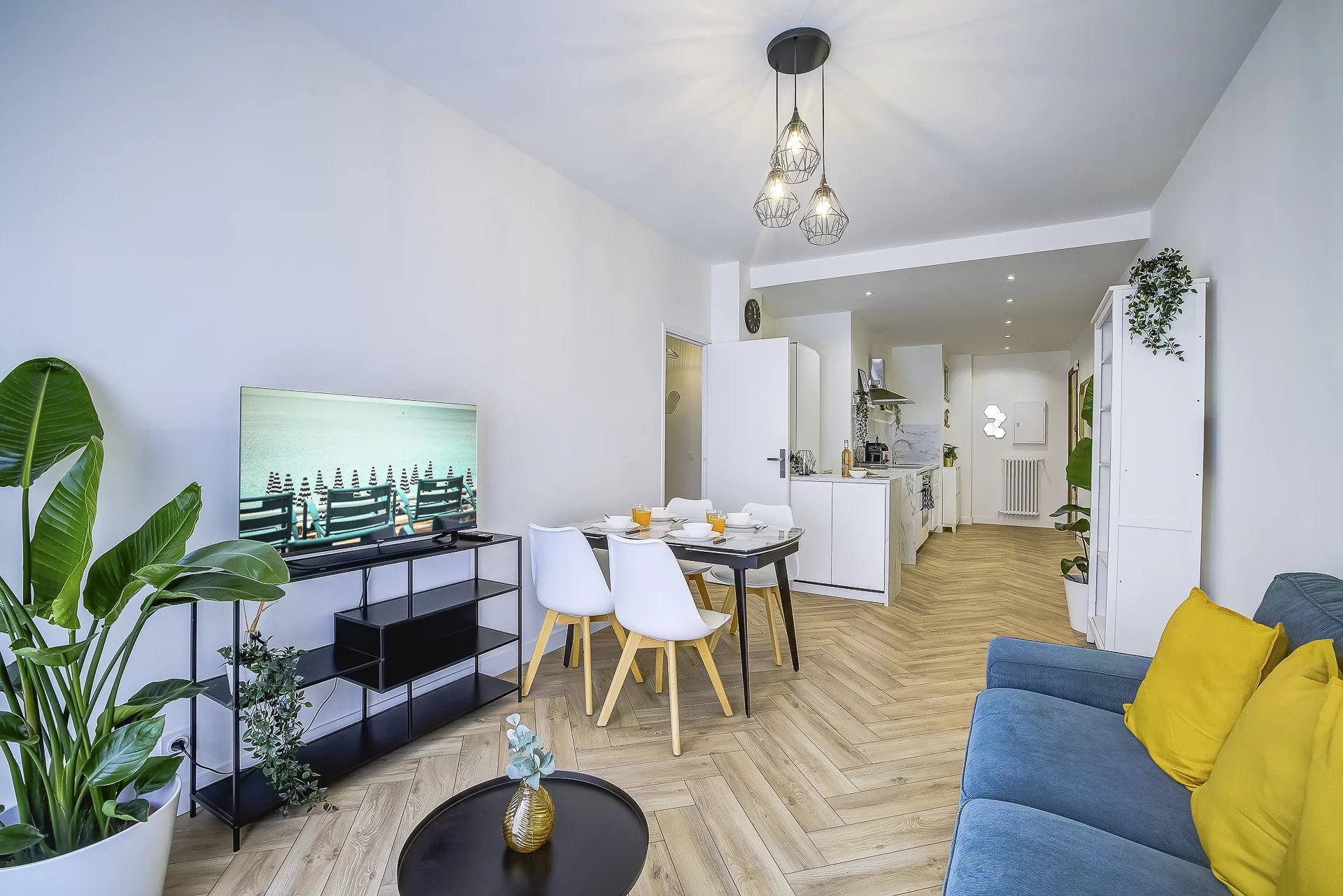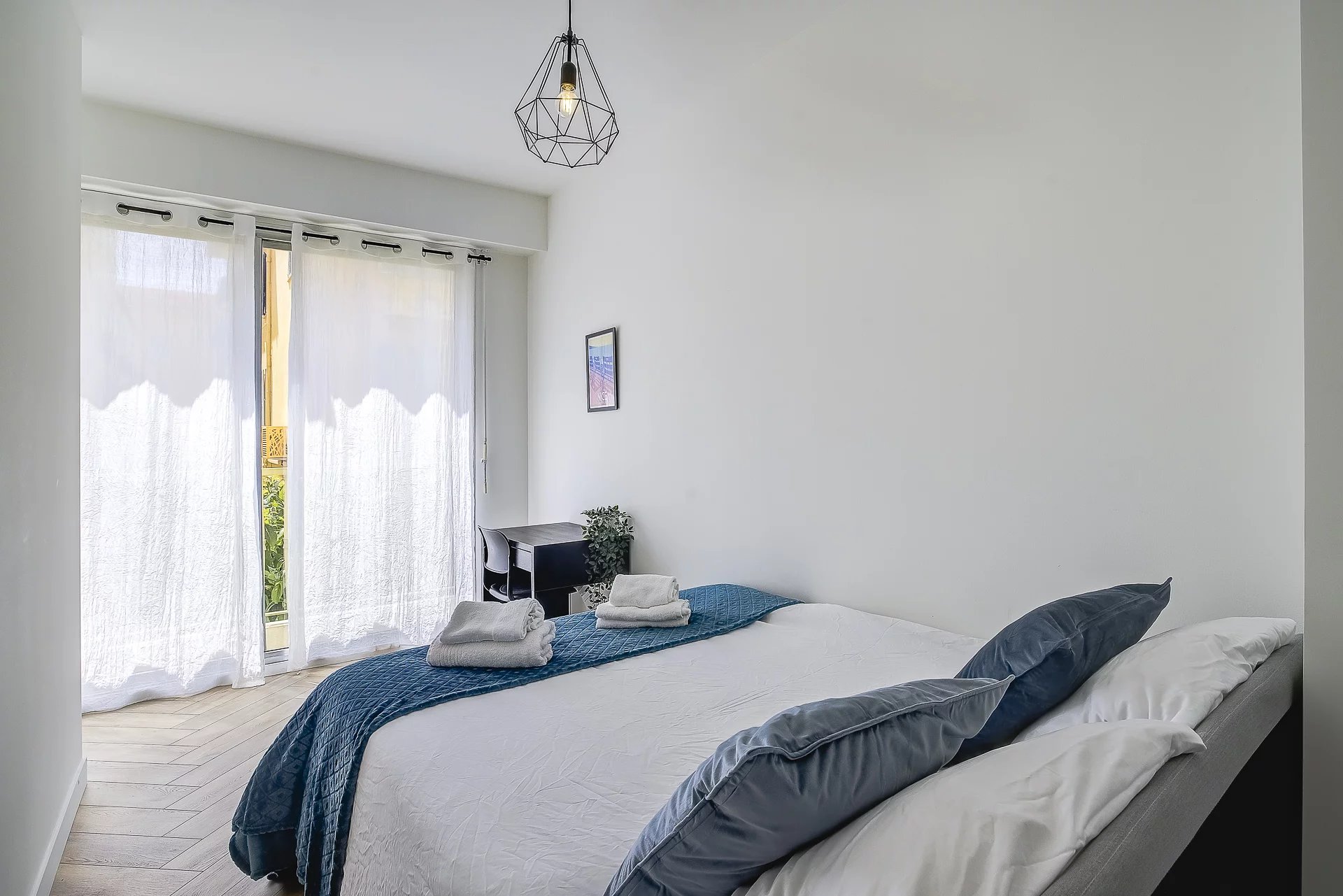 En plein centre ville à 1 minute de la gare Nice Ville et 10 minutes à pied de la mer Superbe 4 pièces neuf avec parquet et climatisation dans le salon Première chambre avec lit double et sa salle d'eau Seconde chambre avec lit double Et troisième chambre avec lit simple Salle de bains supplémentaire 2 wc Cuisine entièrement équipée Inclus gratuitement: Serviettes + Draps + Gel douche et savon Vous pouvez réserver votre séjour sur notre plateforme de réservation via ce lien sécurisé: https://beds24.com/booking2.php?ownerid=33991