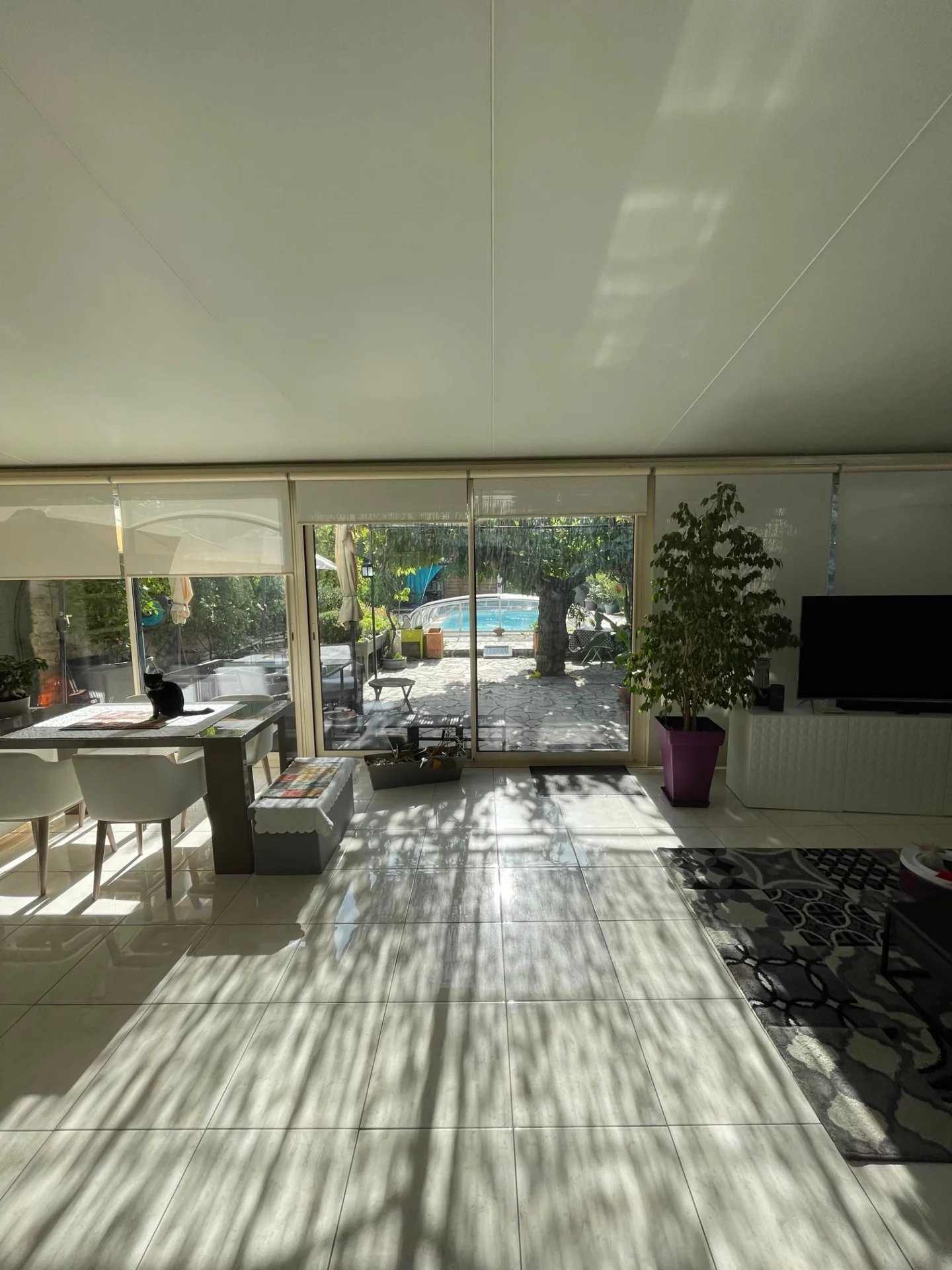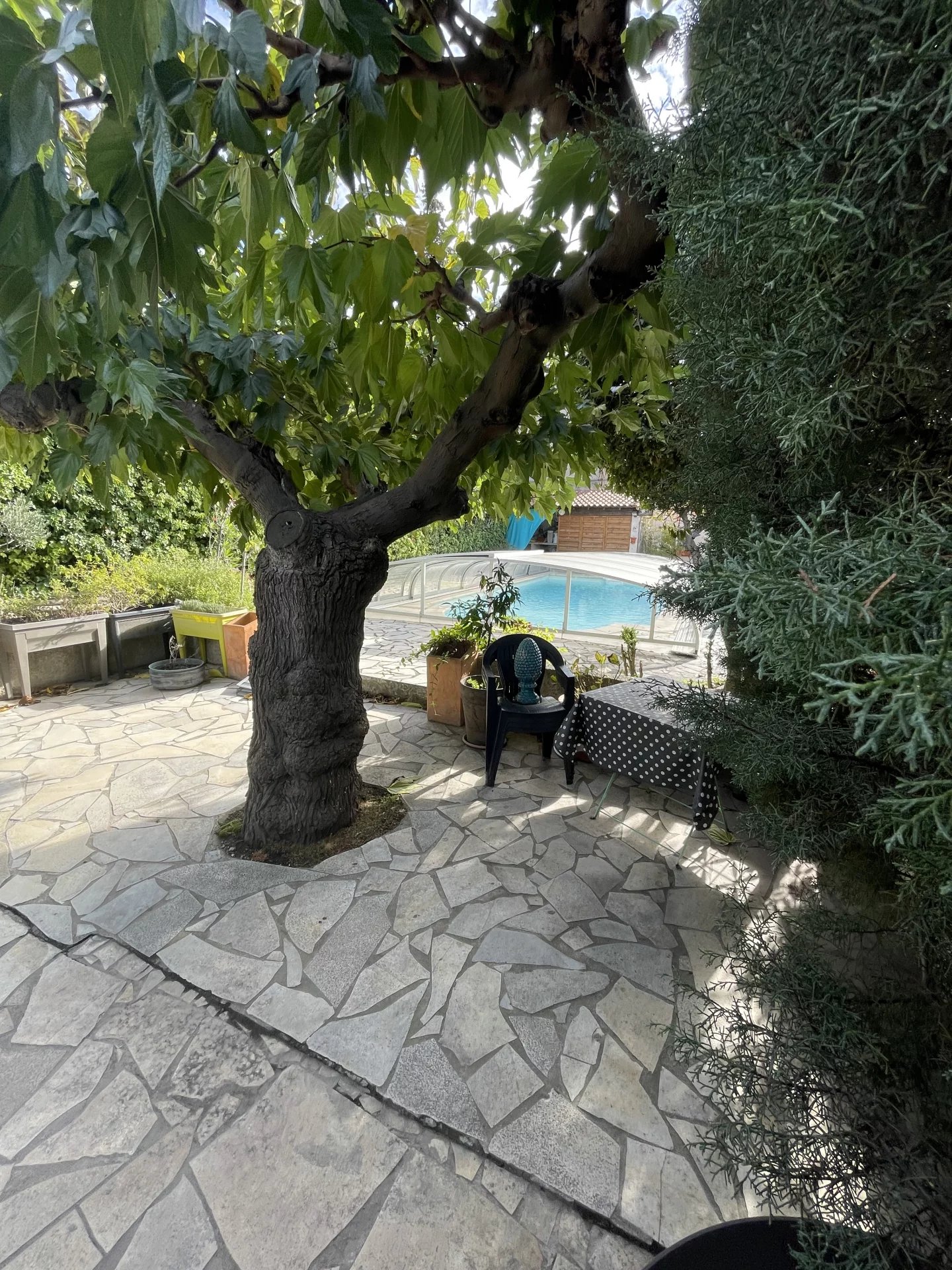 Villa individuelle non mitoyenne de plain pied, type 4/5, exposition plein sud se composant d'un salon/séjour avec une grande baie vitrée de 38m2, Trois chambres d'environ 13m2 dont une parental, deux salles d'eau, deux WC, jolie cuisine entièrement équipé, jardin arboré attenant avec terrasse et piscine et dépendance en fond de jardin formant une habitation d'environ 50m2 avec une entrée indépendante