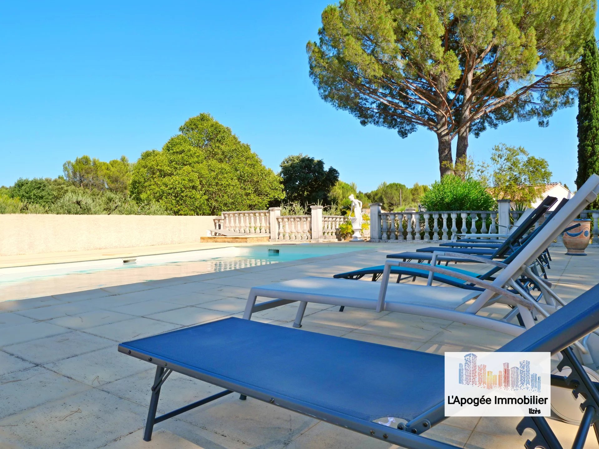 Découvrez dès maintenant cette somptueuse villa de plain-pied d'environ 165m² qui saura vous séduire par son emplacement idéal. Nichée dans un cadre paisible et verdoyant, à deux pas d'un monument emblématique, elle offre un véritable havre de tranquillité. Vous serez charmé par sa cuisine semi-ouverte, son salon/salle à manger lumineux donnant sur une terrasse ensoleillée et un jardin verdoyant, parfaits pour des moments de détente en plein air. Avec ses quatre chambres spacieuses, chacune avec sa propre salle de douche attenante, cette villa offre un confort inégalé pour toute la famille ou les invités. Profitez également du jardin clôturé d'environ 1700m², agrémenté d'une piscine de dimensions généreuses (10x4 mètres) pour des moments de farniente et de convivialité sous le soleil du sud. Et ce n'est pas tout ! Un abri voiture extérieur est également à votre disposition pour protéger votre véhicule des intempéries. Cette opportunité exceptionnelle vous est présentée entièrement meublée pour un emménagement sans tracas. Ne laissez pas passer cette occasion unique et contactez-nous dès aujourd'hui pour planifier votre visite.