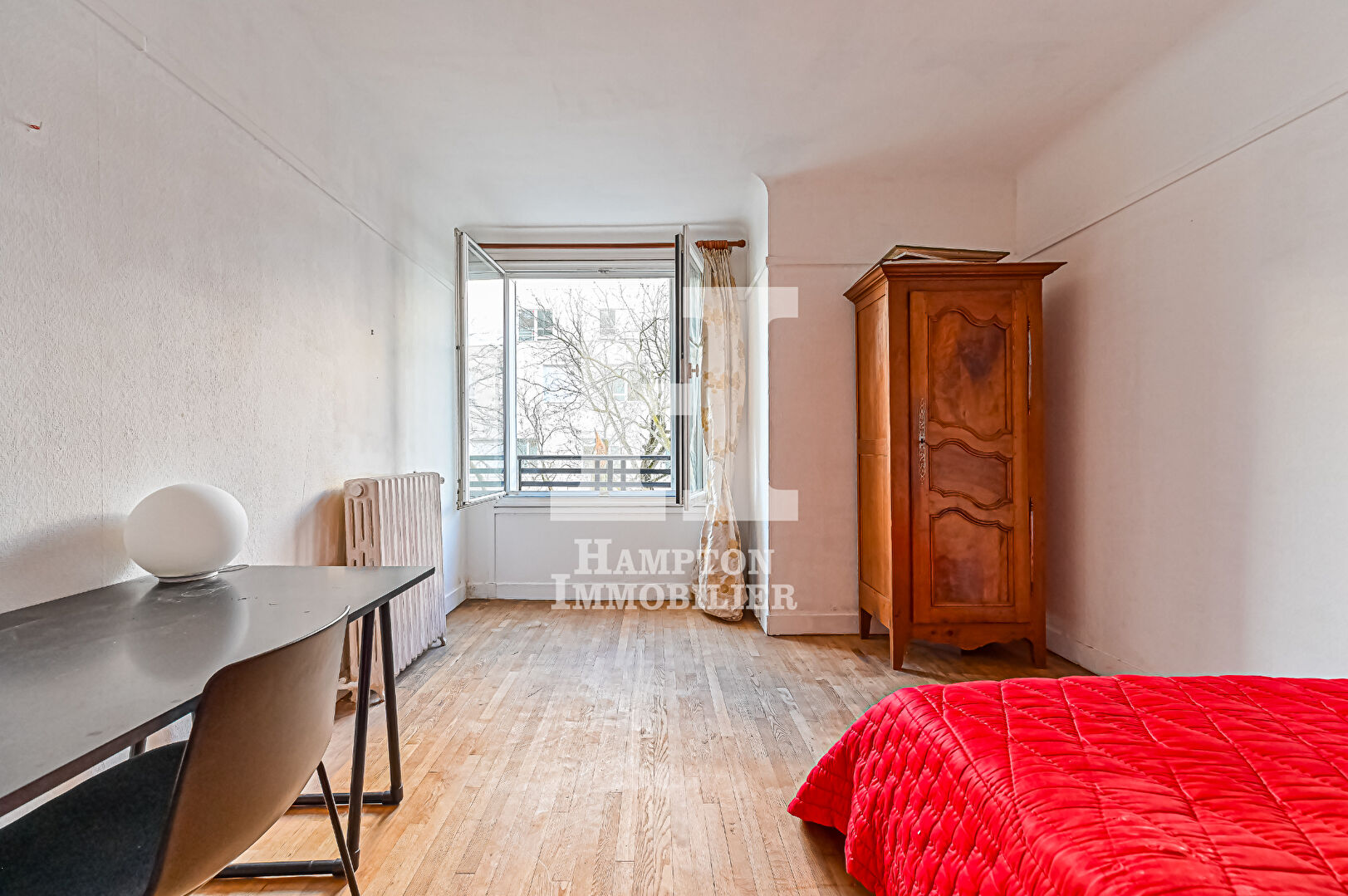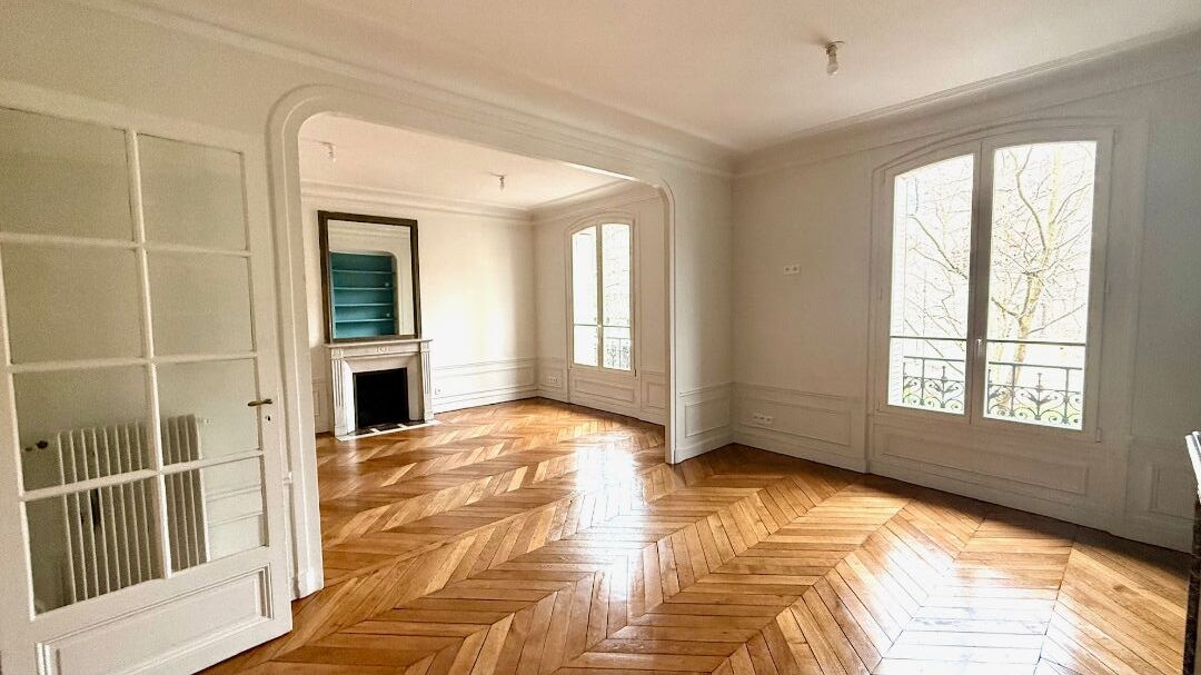 Appartement 4 pièces de 85 m², situé au pied du métro, dans copropriété fin 19°, appartement en triple exposition composé d'une entrée, séjour double, cuisine ouverte, 2 chambres salle de bain, WC séparé et cave.