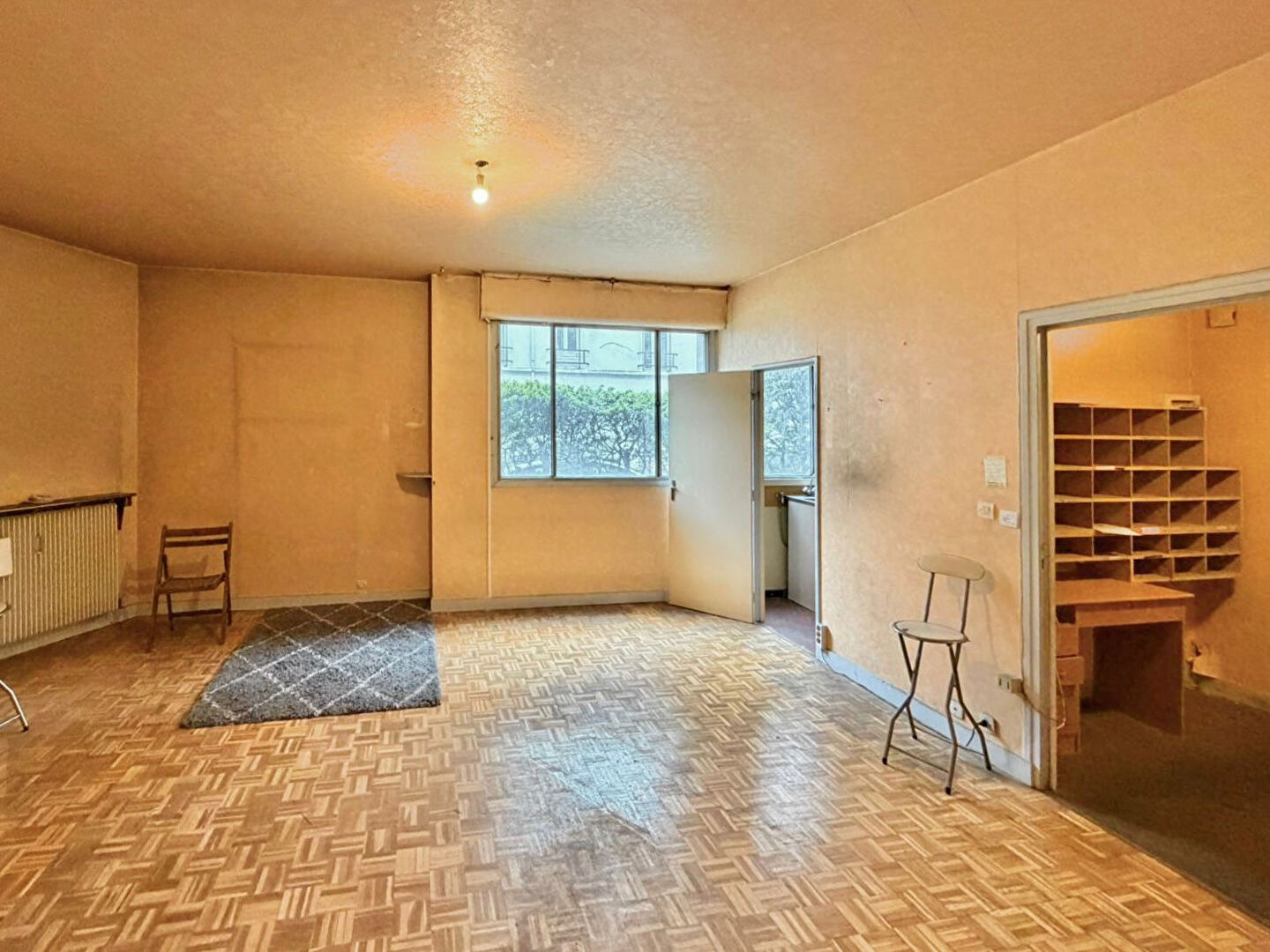 XIV Quartier Hallé situé dans une rue calme au rez de chaussée d'un immeuble récent bien entretenu, nous vous proposons un grand studio à rénover . Il se compose d'une entrée une grande pièce de vie de 24m² une cuisine séparée une salle de bains wc. beau potentiel aménagement possibilité profession libérale (5.30 % honoraires TTC à la charge de l'acquéreur.)