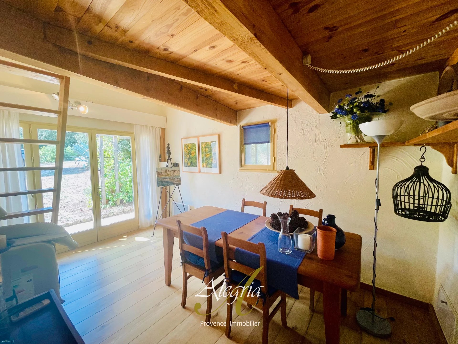 Elle se compose de deux chambres, d'une cuisine entièrement équipée, d'un salon chaleureux avec cheminée, d’une salle à manger avec mezzanine ainsi que d'une salle de douche et WC. À l'extérieur, vous profiterez d'un abri, d'une grande terrasse ensoleillée orientée plein sud, et d'un jardin paysager offrant calme et sérénité.