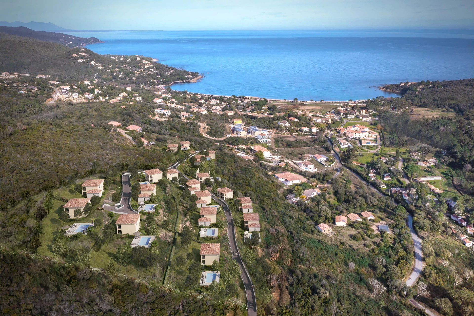 Surplombant le golfe de FAVONE, un hameau privé et sécurisé de 18 terrains à bâtir sur lesquels vous pourrez réaliser des villas avec piscines individuelles face à la mer qui seront s'intégrer parfaitement à l'environnement afin de préserver la végétation et les essences locales.