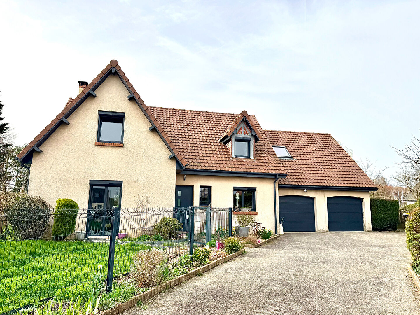 A proximité du SIVOM, pavillon individuel et très fonctionnel de 142 m² SH vous offrant au RDC : Un hall d'entrée, une belle pièce de vie de 59 m² comprenant une cuisine aménagée-équipée ouverte sur un séjour-salon avec poêle à bois, une chambre de 9 m², un WC indépendant. A l'étage : Un dégagement desservant 3 belles chambres, une salle de douches, un bureau, un dressing, une salle de bains avec WC. Agréable terrain entièrement clos et sans vis à vis de 2134 m² (non divisi