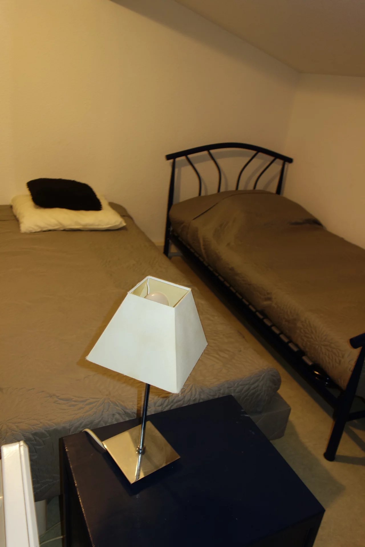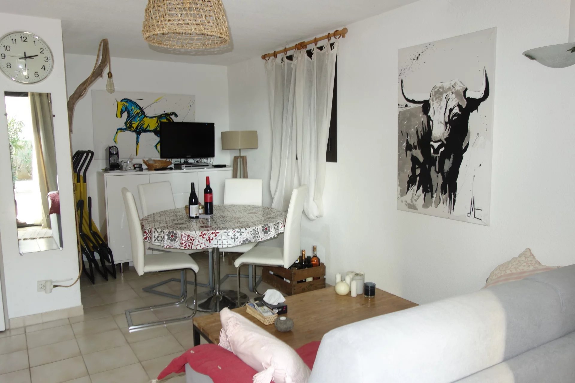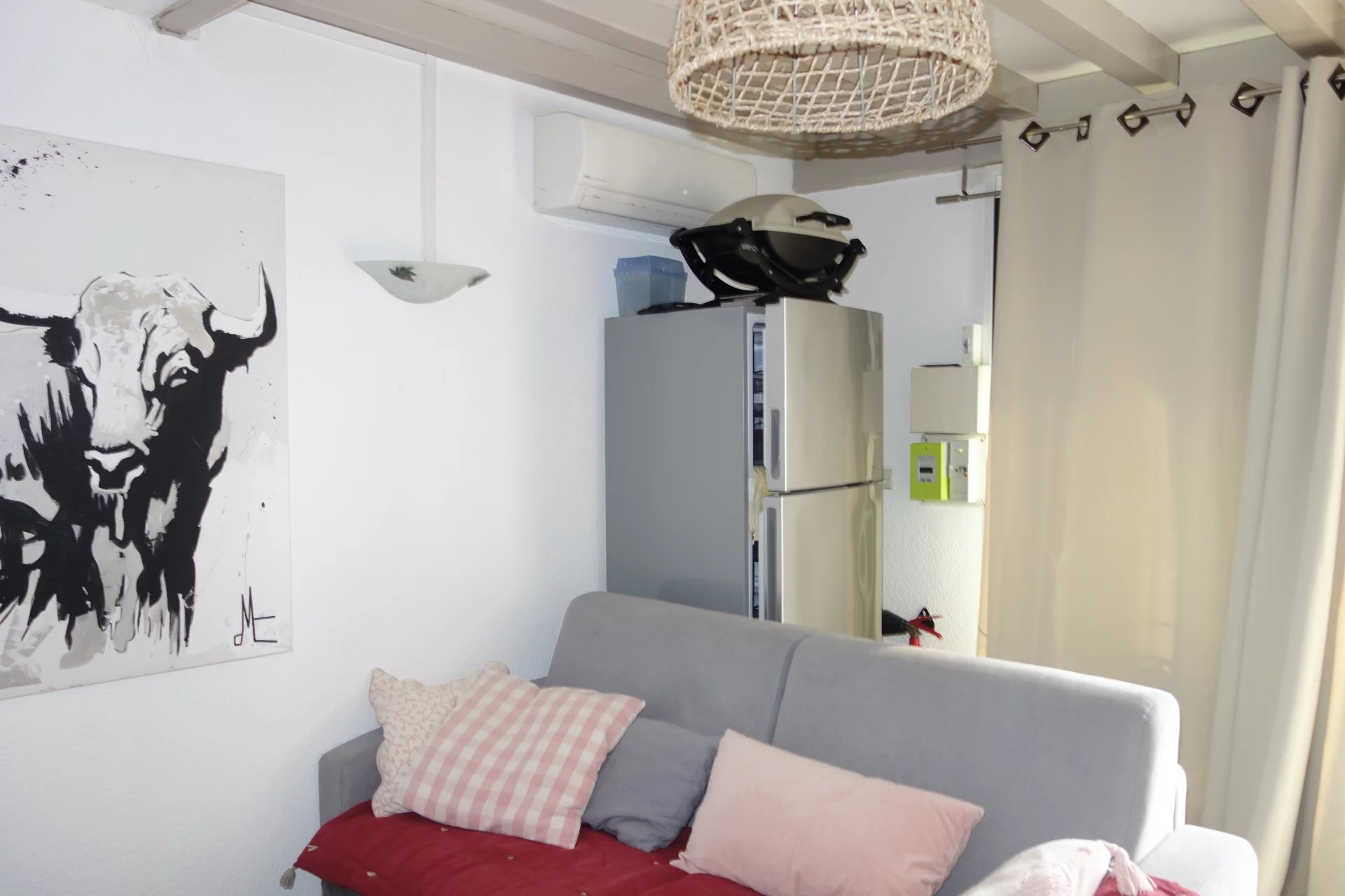 Maison individuelle dans résidence avec piscine avec cour de 25m² et parking privatif. Comprenant en rdc cuisine équipée, séjour, toilettes, salle d'eau. À l'étage une grande chambre, une chambrette. Climatisation. Parfait état.