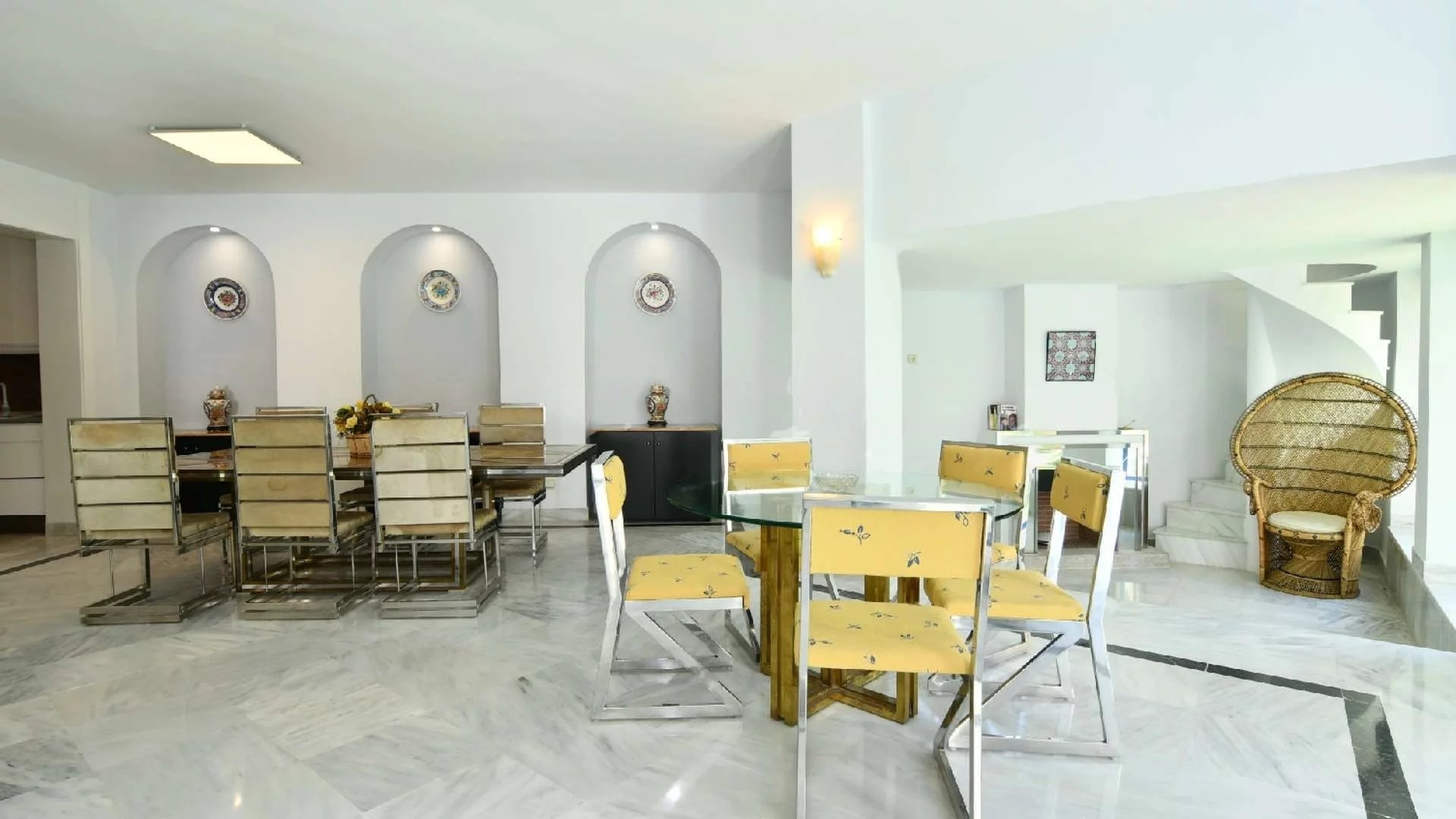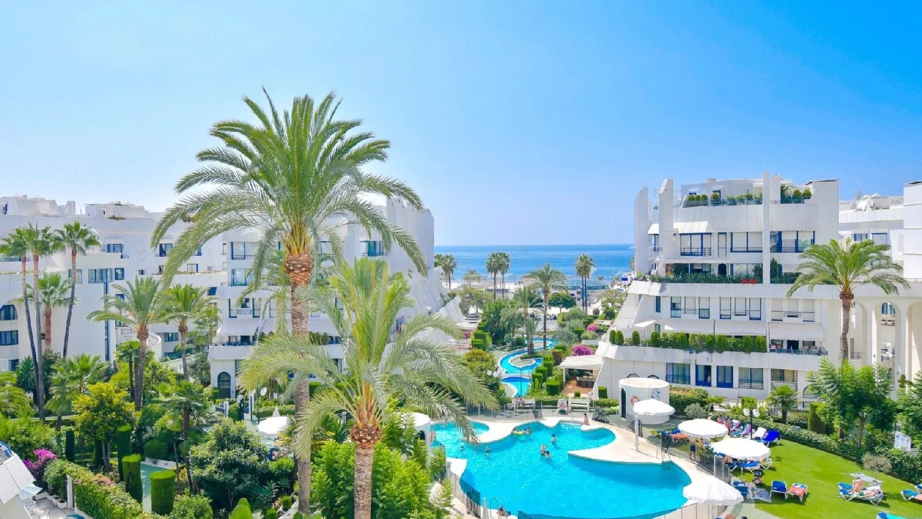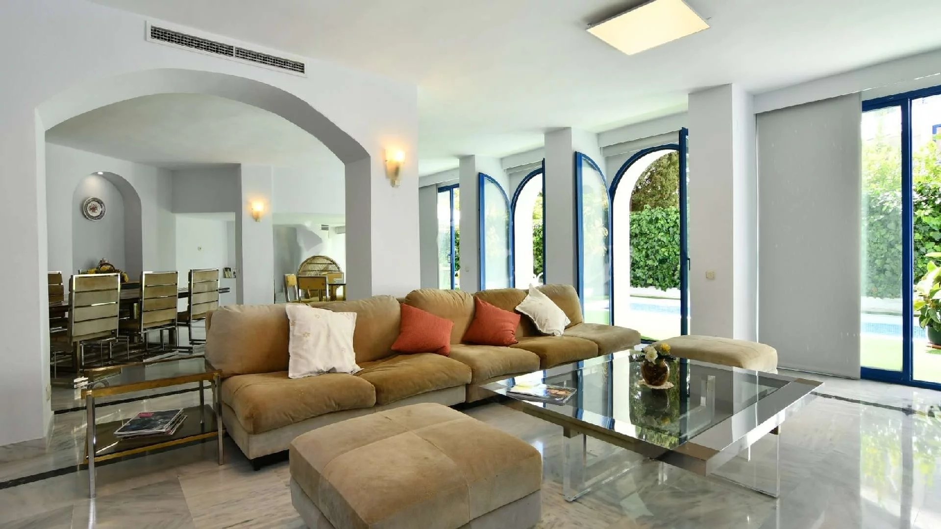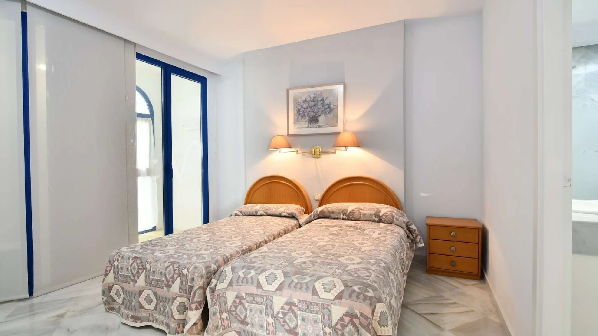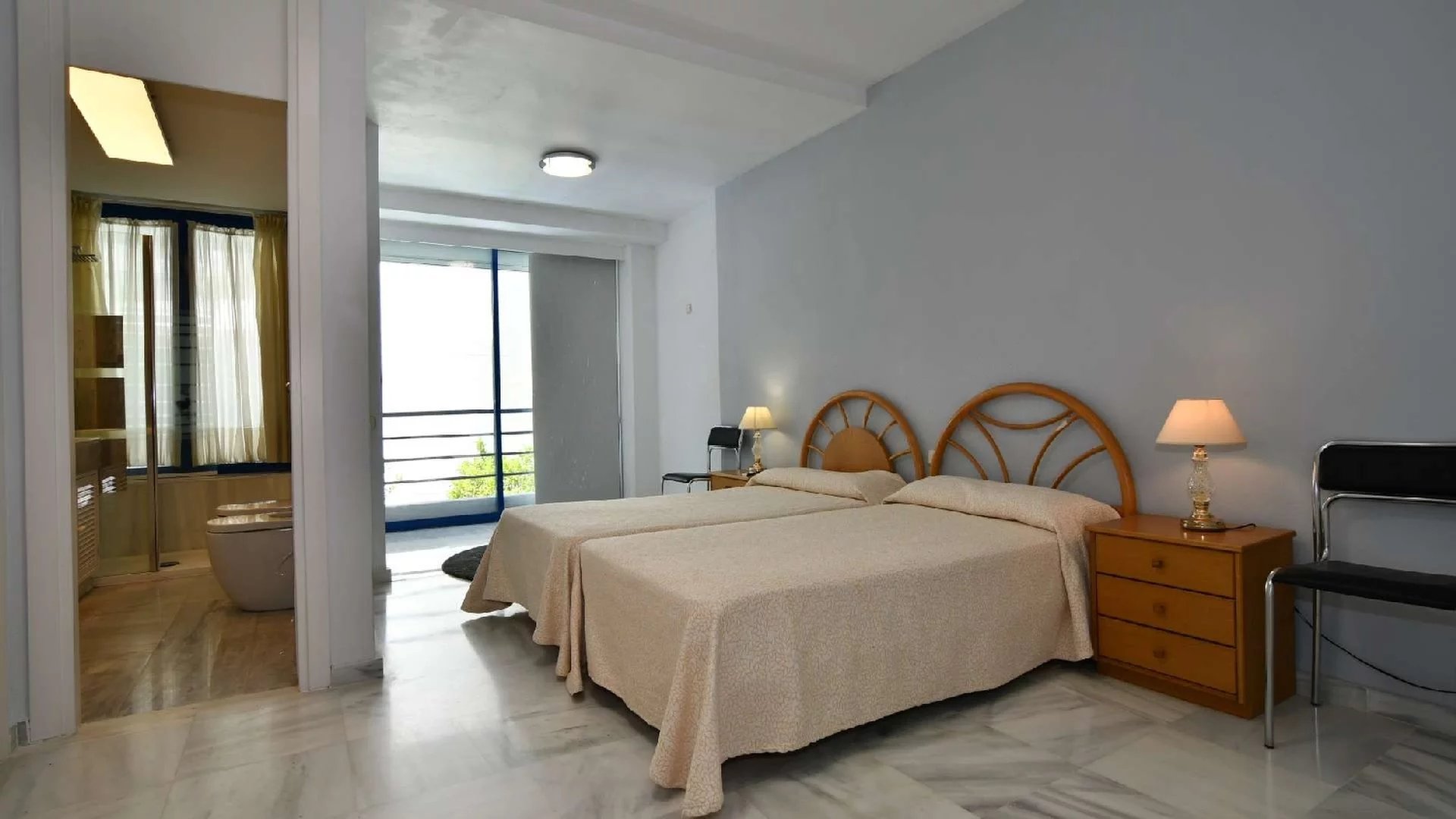 Duplex with private pool in the urbanization Marbella House, one of the most prestigious of Marbella, with 24hrs security, at unbeattable location next to the beach and with all the advantages of the center. Amazing tropical gardens, gym, squash, sauna, etc. The property is distributed on two very spacious floors. The entrance floor has a large living room with fireplace and three differentiated ambiances, as well as large floor to cealing glass doors that lead to the private garden of 110 meters, with a pool and southwest facing. On this floor there is also a separate kitchen and a toilet. Upstairs there are three very spacious bedrooms with en suite bathrooms. Marble floors and bathrooms, air conditioning hot / cold, two fireplaces in perfect use, three parking spaces and storage room, all included in the price.