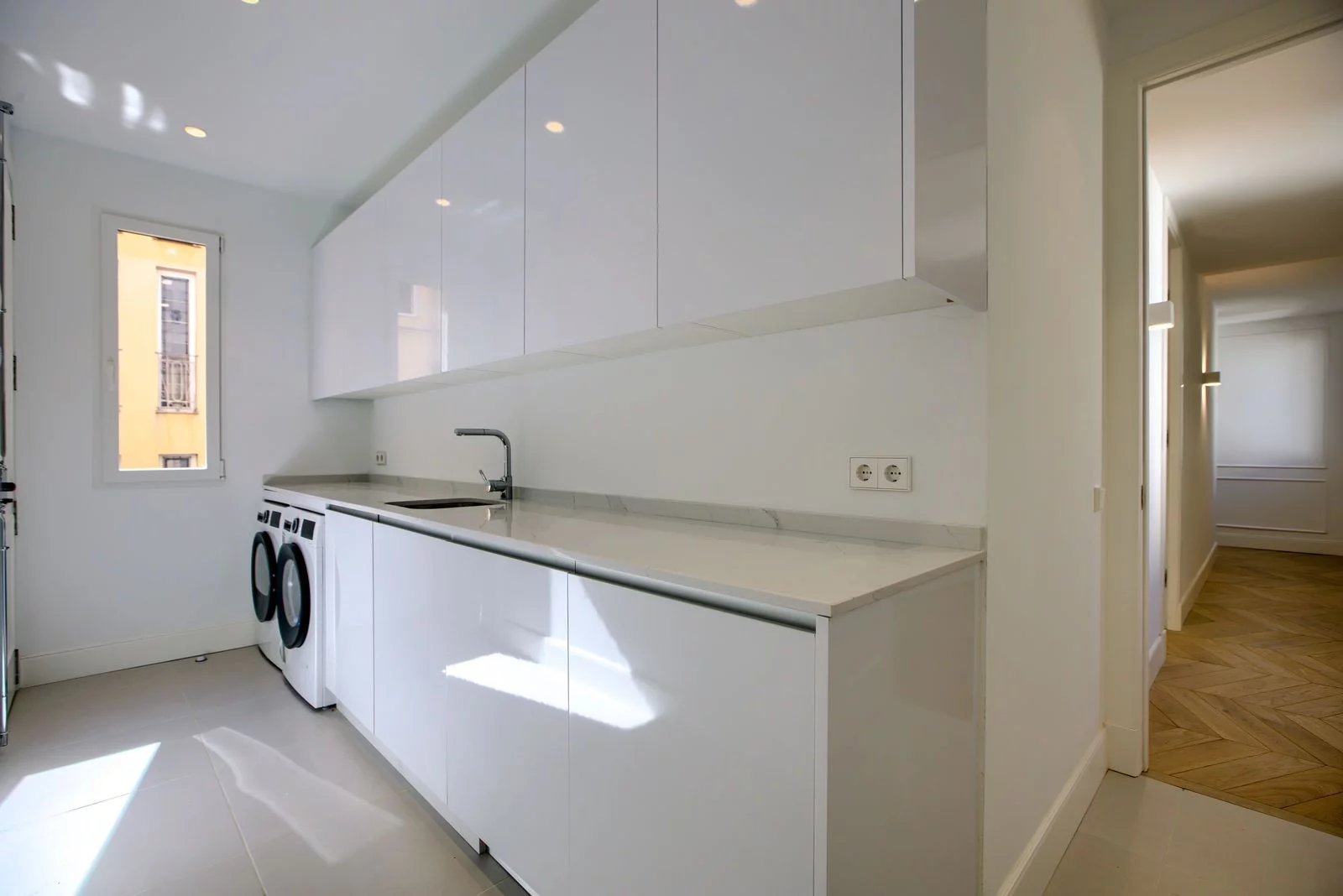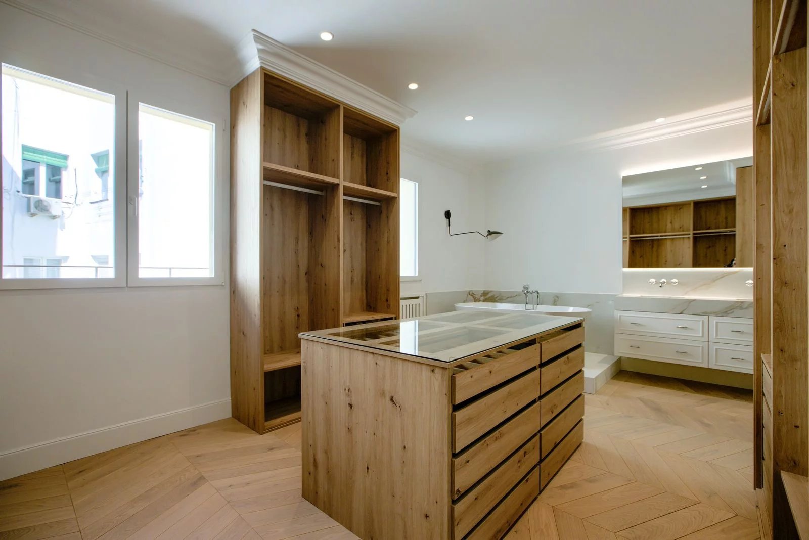 eraltia presents this fabulous apartment with unique features in front of El Retiro which is currently under renovation. The property is located on the sixth floor of a building of the early twentieth century with panoramic views of the park. South facing and therefore with lots of light throughout the day. The property has 326 m² in which you can enjoy a spacious living room of 75 m² and four bedrooms plus one service; three of them with en suite bathroom, also has a TV area and has a large kitchen of 26 m² with island. The property has been renovated using the best materials and qualities available on the market. The building is classic, with a representative portal and doorman. The interior courtyards are well kept and the common areas as well. It has a main and service elevator. The property is located in one of the most privileged areas of Madrid, in the Recoletos neighborhood and opposite the Retiro Park. Highly demanded area but with very limited supply. Property located a few steps from the main attractions of the Salamanca neighborhood and the neighborhood of Ibiza, two of the most emblematic and liveliest neighborhoods of a great city like Madrid. )