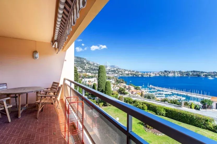 Dans une résidence de standing avec piscine, parc et gardien, magnifique appartement de 3 pièces de 75m² entièrement refait, traversant Sud-Nord, avec une belle terrasse de 14m² bénéficiant d'une magnifique vue sur la mer, le port et le Cap Ferrat. Appartement avec des prestations haut de gamme, climatisation, cuisine équipée etc. Une cave et un parking privatif dans la résidence complètent le tout.