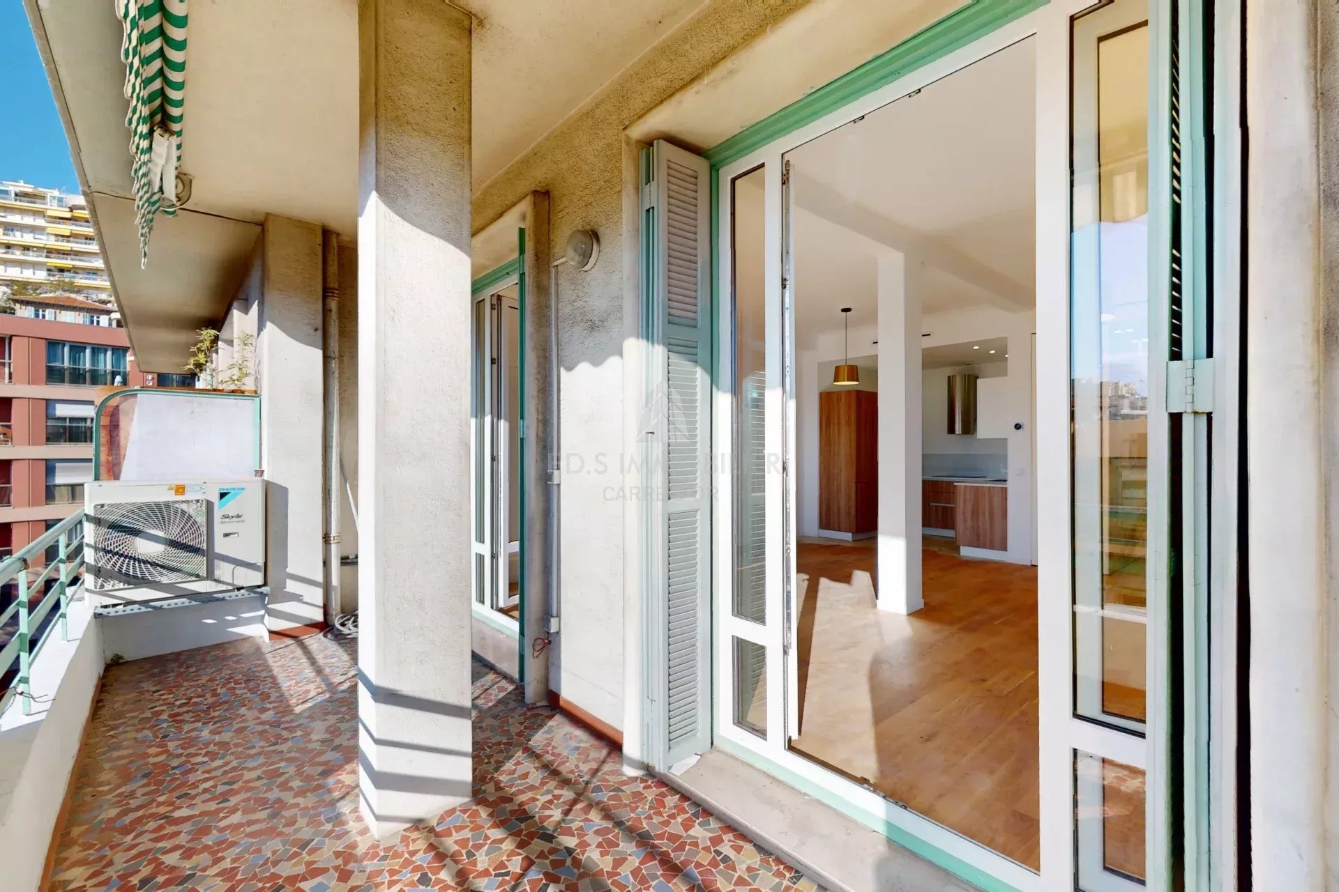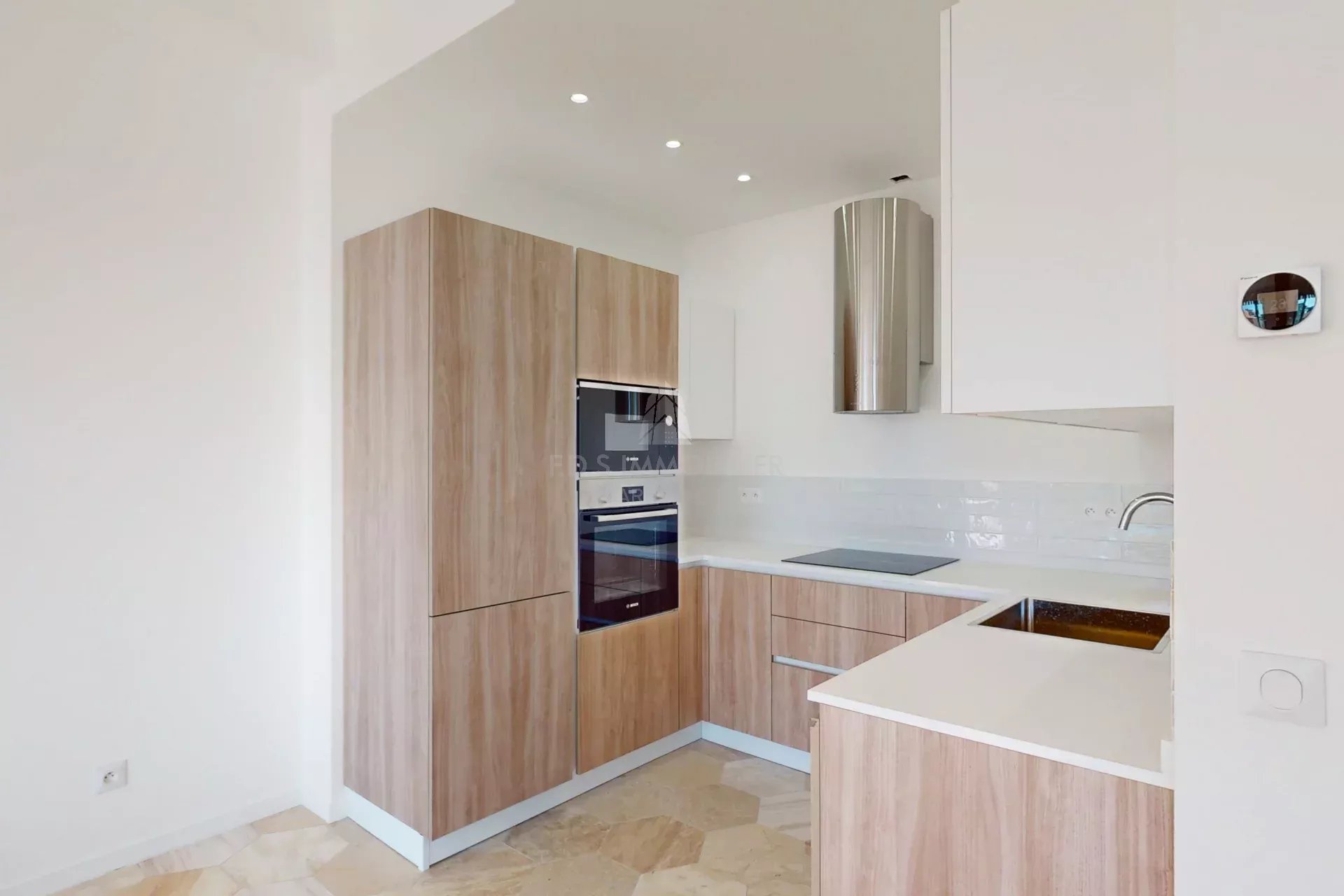 Au 4ème étage d'un Immeuble récent situé sur l'Avenue des Fleurs, plein Sud, spacieux 3 pièces d'environ 80m2, refait entièrement. Composé d'un Hall d'entrée avec placards, un lumineux séjour donnant sur une terrasse de 12 m² avec une très belle vue dégagée sur le Château des Baumettes, une cuisine américaine équipée, deux chambres dont une avec salle d'eau privative et wc, ainsi qu'une seconde salle d'eau avec wc et une cave.