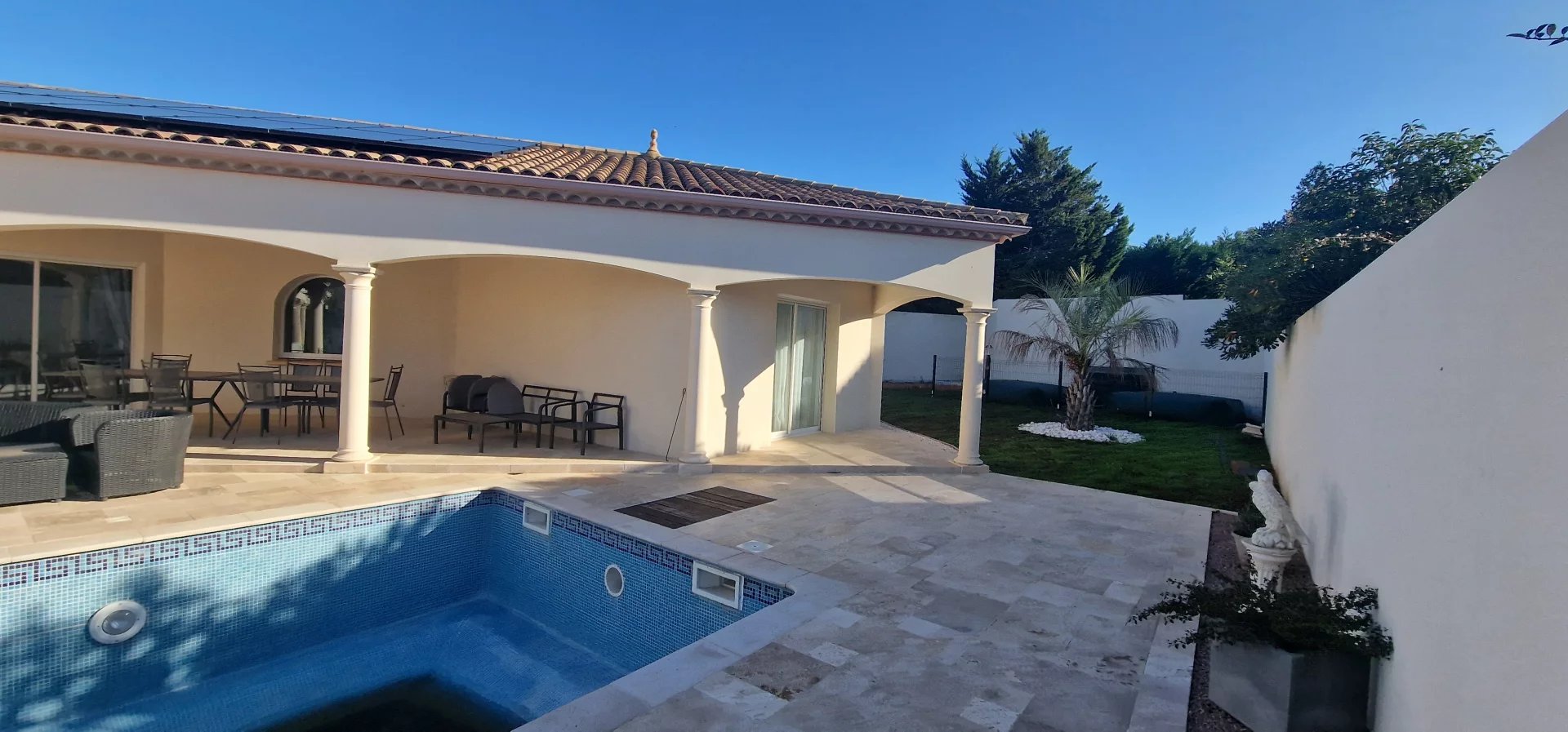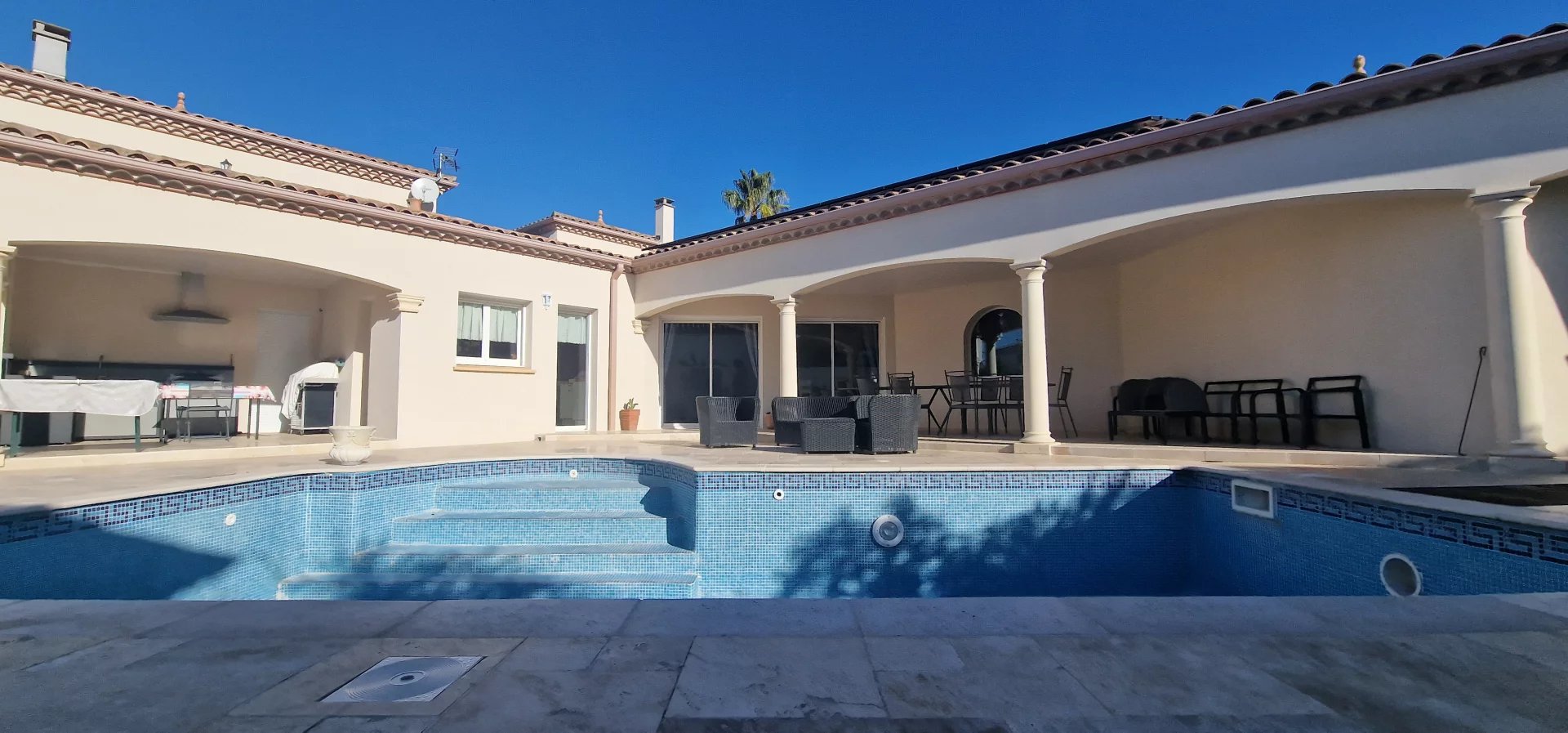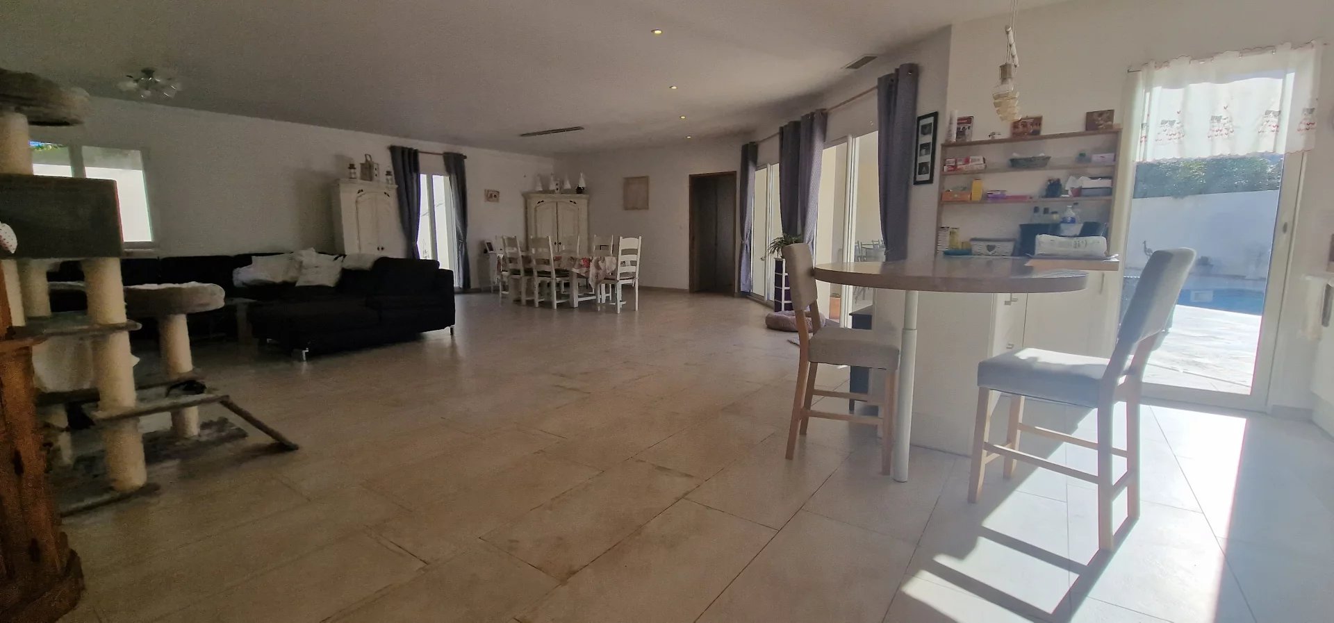 Situé sur la commune d'Agde , à proximité de tous commerces et à 10 min de la mer , venez découvrir cette sublime Villa de 291.83m2 composée d' un appartement indépendant pouvant être loué en courte durée , un total de 6 chambres , 5 toilettes , 3 salles d 'eau , garage et une spacieuse pièce à vivre donnant sur la piscine et son jardin joliment arborée de 1000m2 . Etat EXCELLENT / Quartier TRES RECHERCHE / Exposition PLEIN SUD Visite au 04 68 320 320 choix 1
