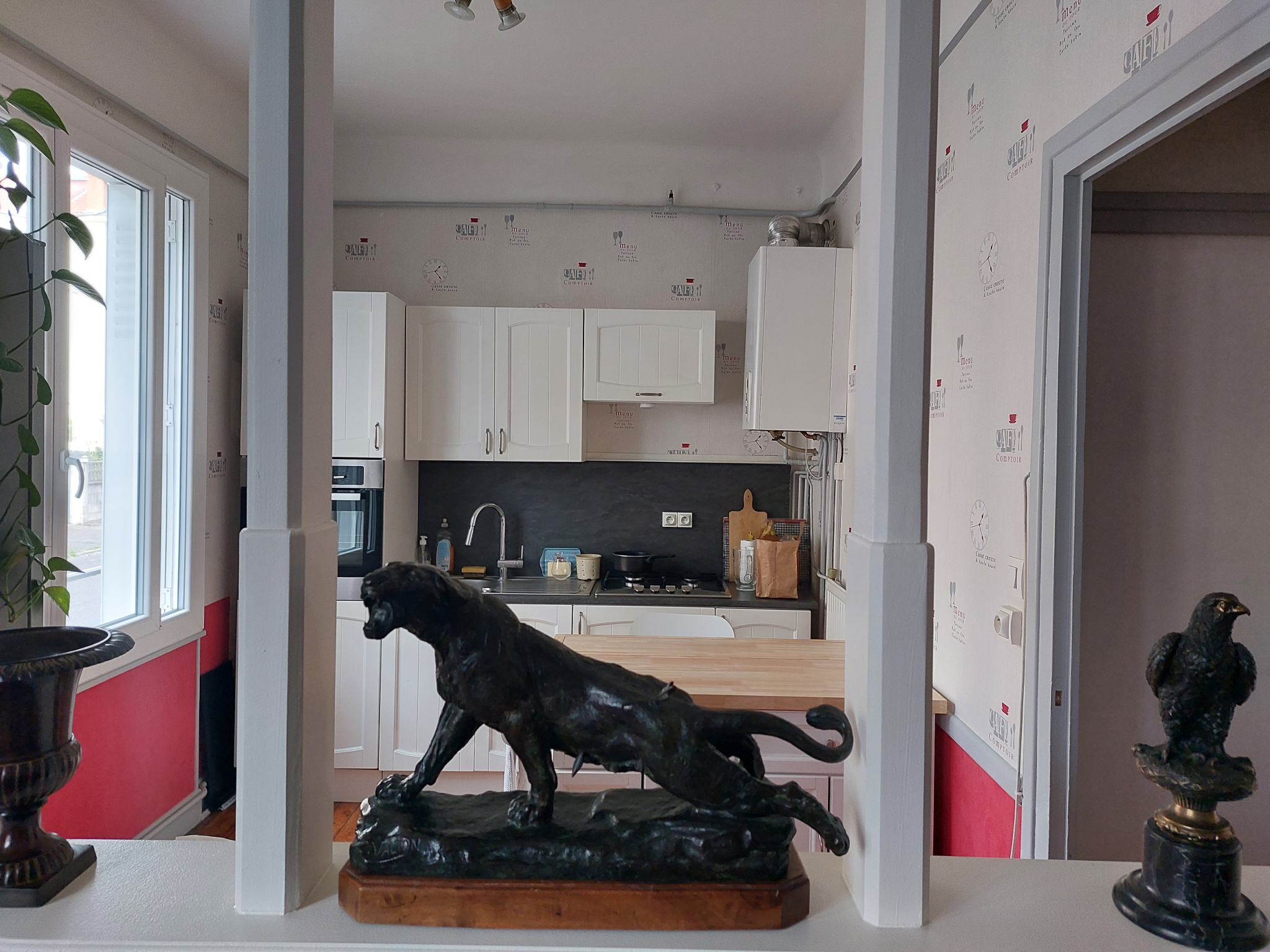 SOUS-OFFRE -VICHY, quartier thermal , à 2 pas des cures et du coeur de ville : appartement rénové de 52 m2, traversant donc très lumineux, refait à neuf , composé d'une entrée , une cuisine équipée ouverte de 9.02 m2sur séjour de 18.3 m2 , chambre de 13.6 m2 sur cour , salle de douche de 2.6 m2 , WC indépendant de 2 m2 , buanderie de 1.9 m2. Cave et garage fermé. Rénovation totale avec chauffage individuel au gaz, double-vitrage,combles de l'immeuble et cave isolés, électricité neuve, porte blindée, fibre. Toiture immeuble et garage neuve. Taxe foncière : 1 000 euros. Charges de copropriété : 51 euros par mois.