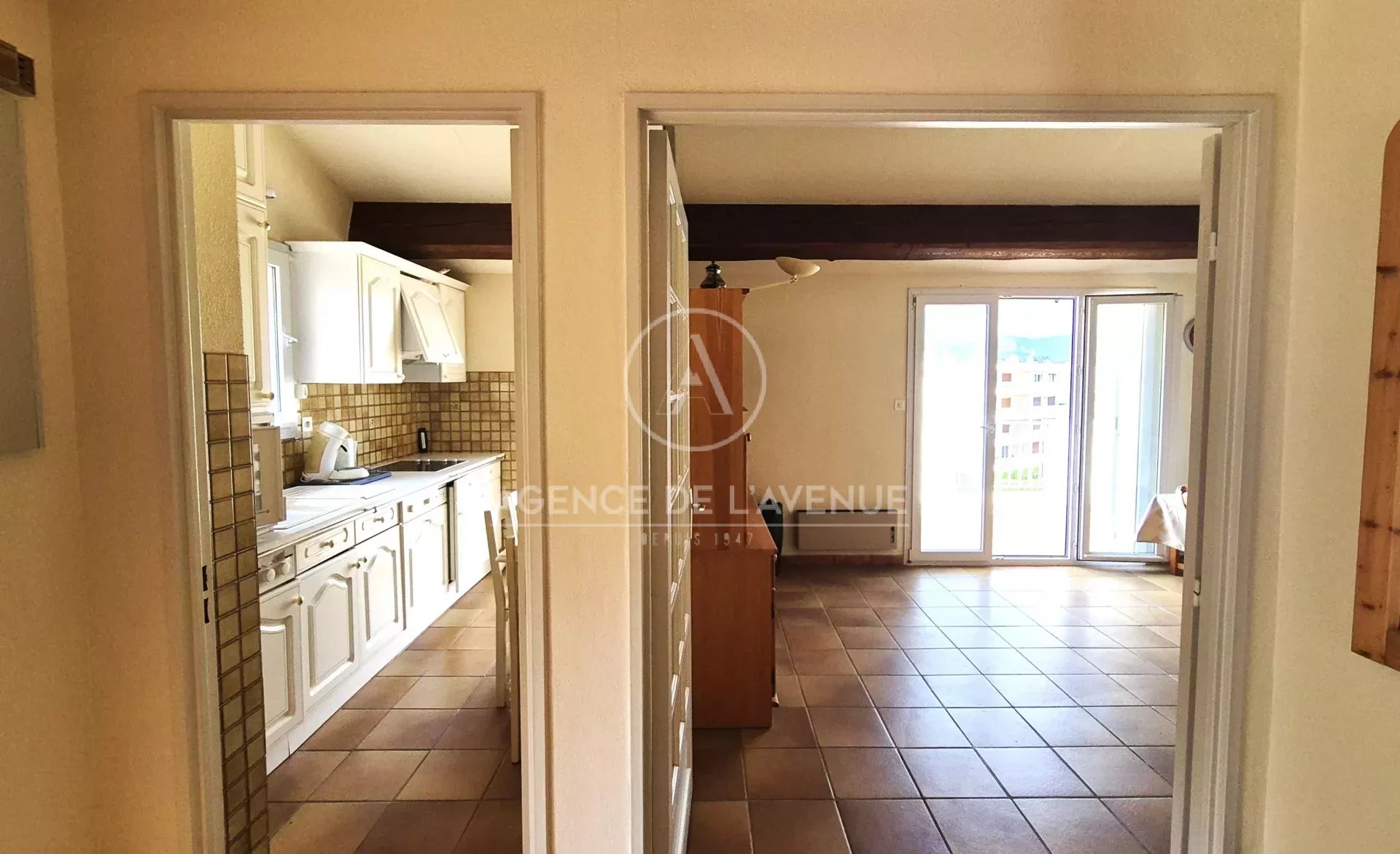 Quant à la cuisine, elle est indépendante et peut être ouverte sur le salon si besoin. Ces deux pièces accèdent à la terrasse.