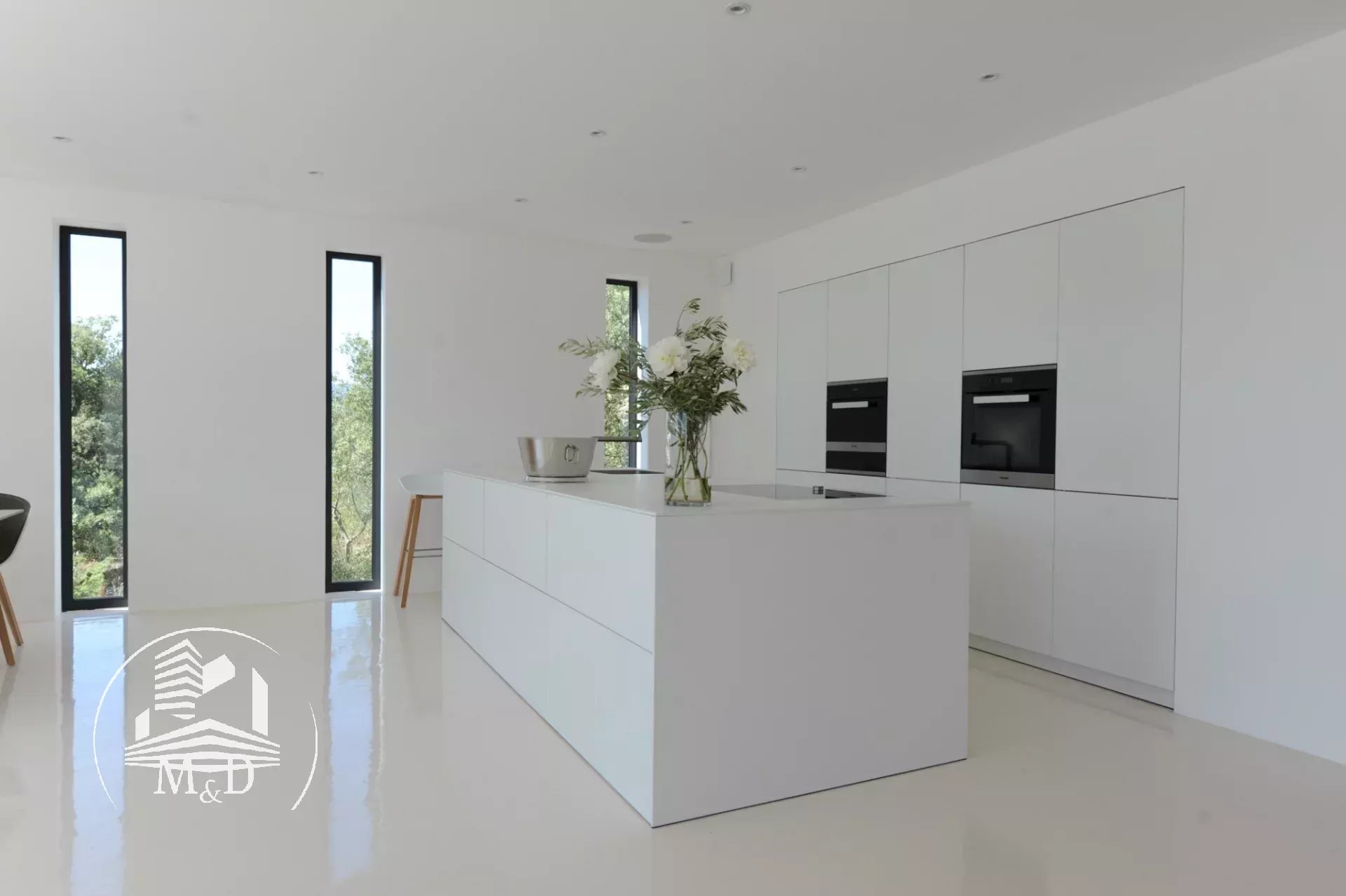 Construction sur mesure avec prestations de qualité : domotique, chauffage au sol avec pompe à chaleur, climatisation réversible, volets roulants électriques en alu, menuiseries en alu gris anthracite, piscine... Plus d'infos sur notre site.