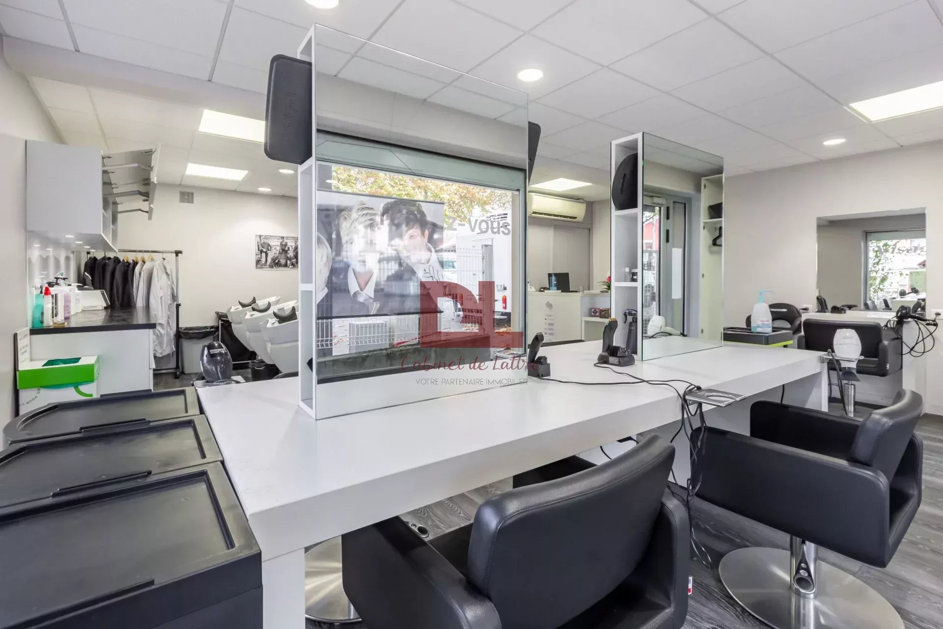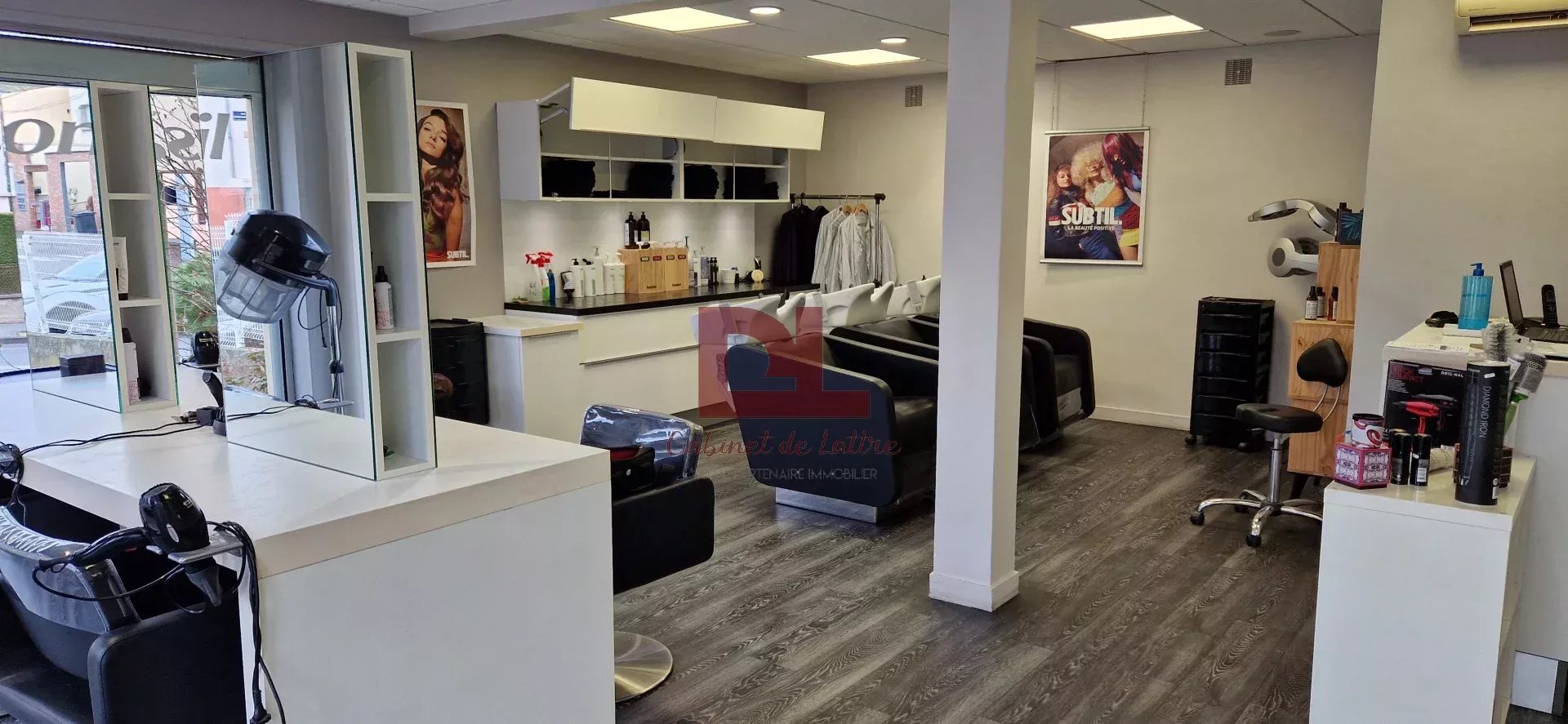 Le local, très lumineux avec ses deux vitrines, est composé du salon de près de 42m² avec 5 postes de coiffage et 3 bacs massant, d'une arrière-boutique (stockage) et cuisine, puis en sous-sol on trouve les deux chauffe-eau (2 x 200 L).