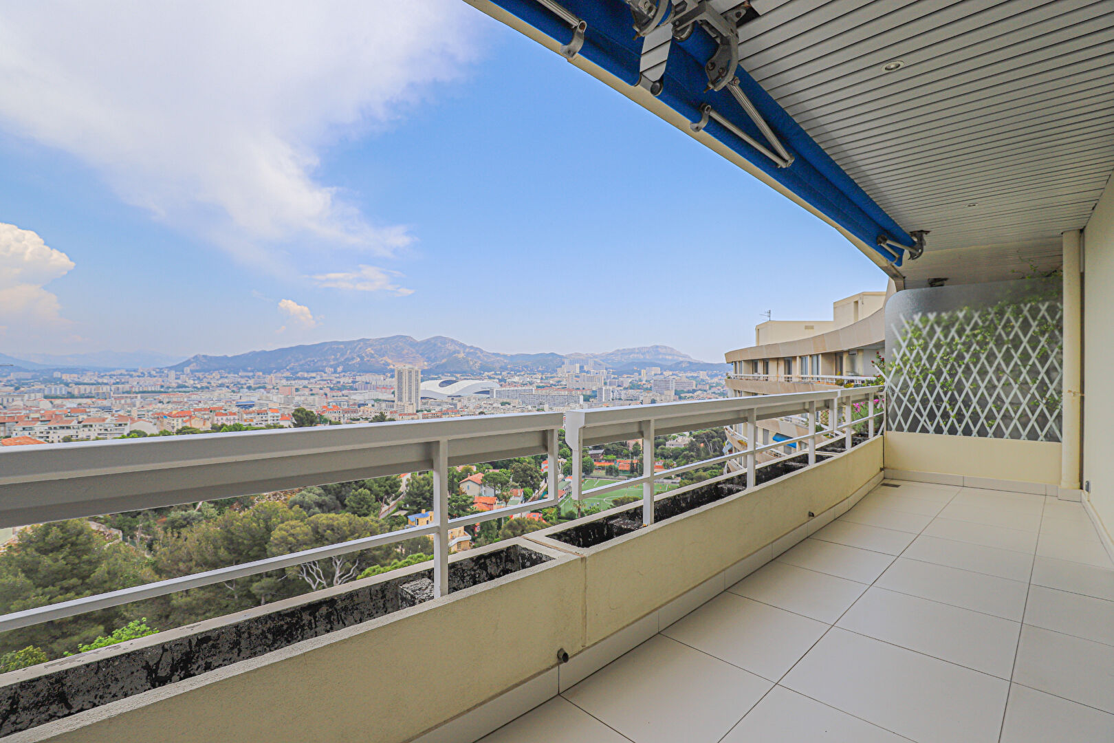 CARRE D'OR - PERIER - DERNIER ETAGE - VUE PANORAMIQUE - 20M² d'EXTERIEUR. Dans une très belle résidence sécurisée sous vidéosurveillance, au coeur d'un PARC DE 5 HECTARES DE PINEDE, à 2 pas de tous les transports (Bus 86 à 200m) et commerces, au CALME TOTAL, appartement type 3/4 de 93.05m² loi Carrez, TRAVERSANT EST-OUEST, en BON ETAT. L'ensemble de l'appartement donne sur une TERRASSE ou un BALCON SANS VIS A VIS, salon/salle à manger PARQUETE de 31m², grande cuisine équipée prolon