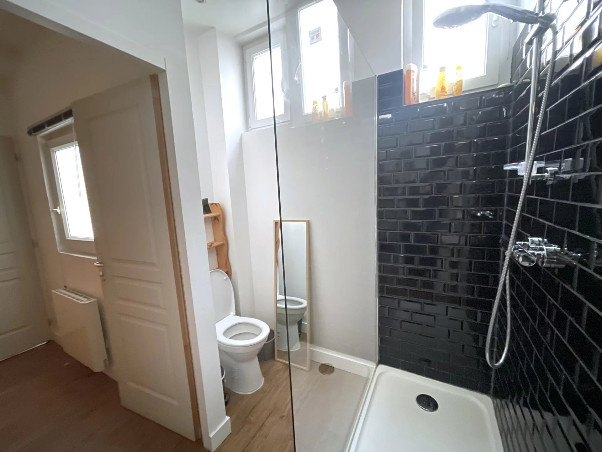 Salle d'eau moderne avec douche et toilettes