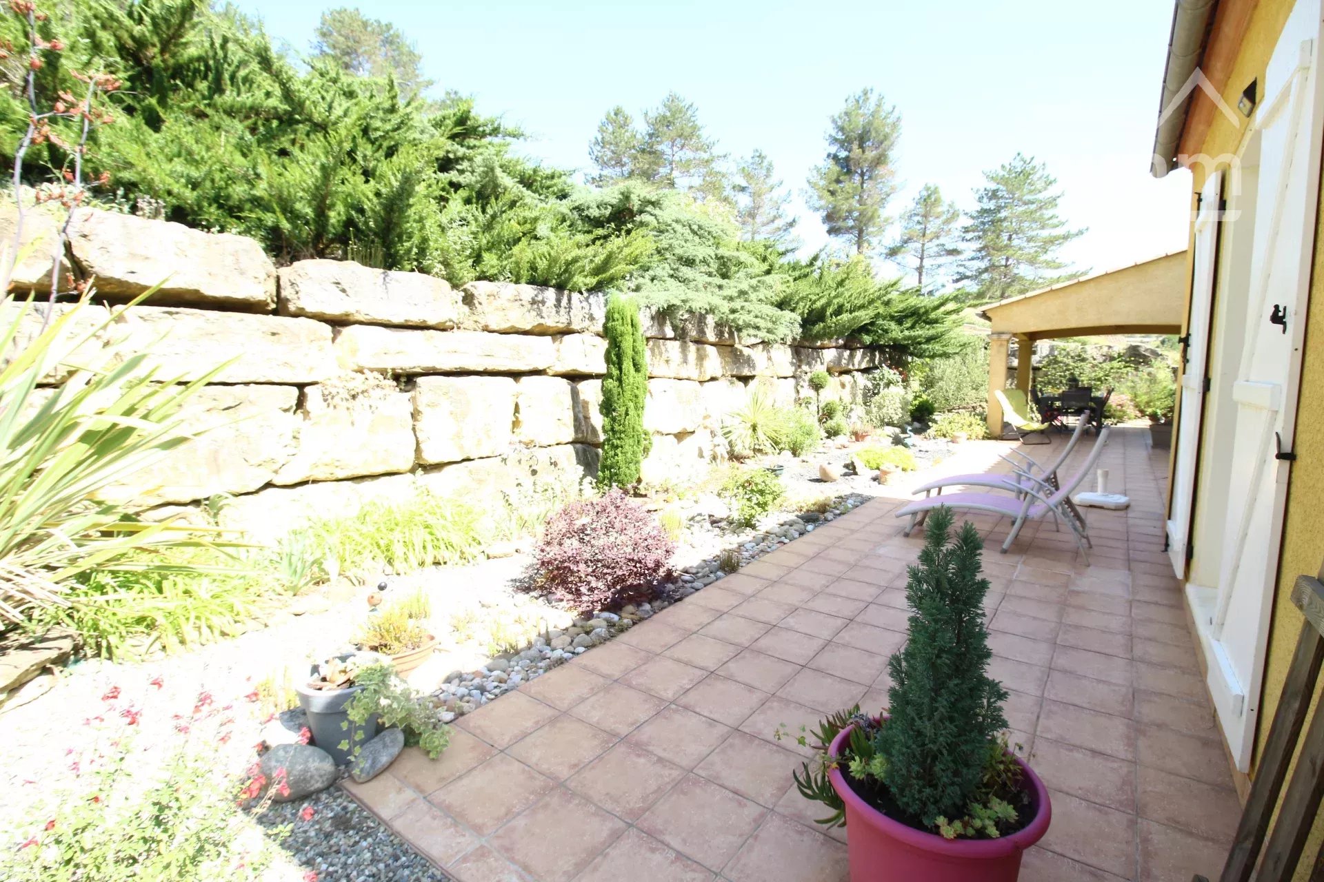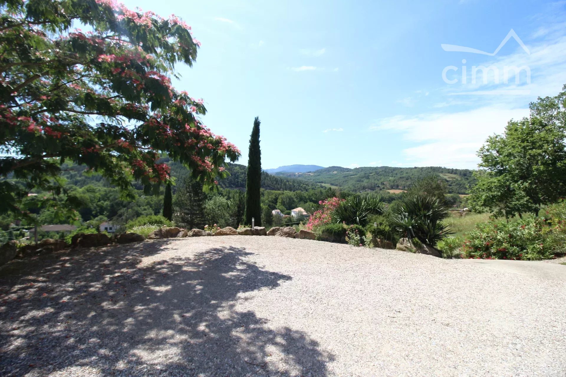 A vendre une villa de plain pied sur 3027m² de terrain clôturé. L'accès se fait par un chemin privatif. La maison se compose d'un grand salon cuisine équipée de 46m², de 3 chambres, d'une salle d'eau avec wc séparé, d'une buanderie et d'un garage. La maison a été construite en 2005 et a été très bien entretenue. Le grand jardin de 3027m² en partie constructible est entièrement clôturé et offre une vue panoramique sur les environs. Un espace potager et arbres fruitiers a été aménagé. L'avis de votre agence: Une magnifique villa avec une vue imprenable, aucun travaux à prévoir. Honoraires à la charge du vendeur - Virginie PARDO - Agent commercial - EI - RSAC Carcassonne 843944992 - RCS 40834475202440 - Caisse de garantie QBE 500000 EUR L'immobilier vous intéresse, contactez-moi