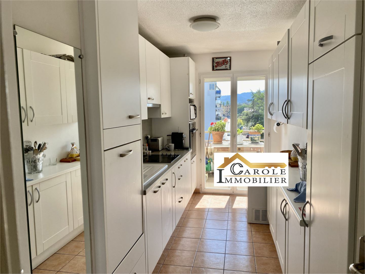 CAROLE IMMOBILIER propose à MANDELIEU-Centre grand 4 pièces climatisé donnant sur 2 loggias, en étage avec ascenseur, triple expositions , très clair dans une résidence standing avec piscine composé: D'un hall d'entrée, spacieux salon-séjour, cuisine équipée,