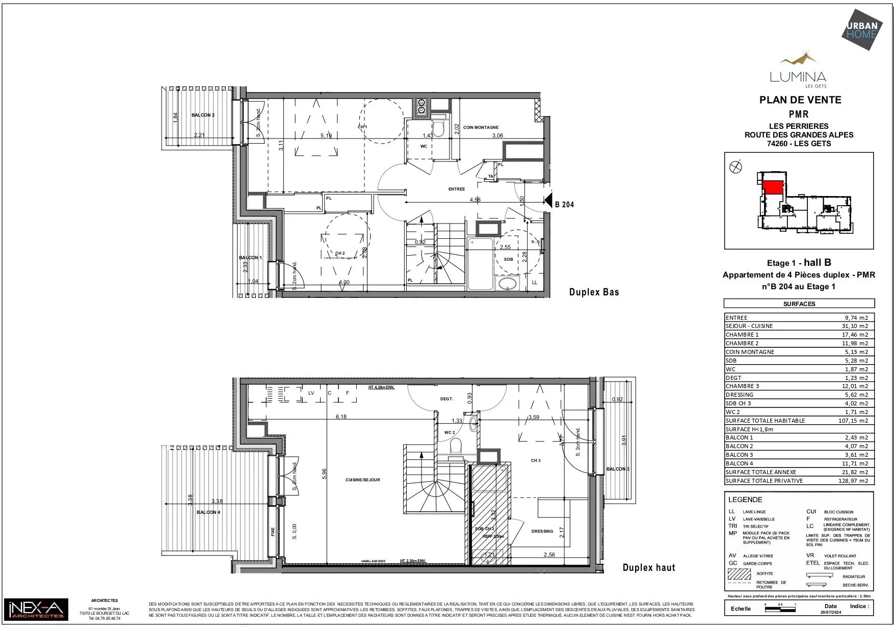 Située à l’entrée de la station des Gets, à seulement deux pas du télésiège des Perrières, cette nouvelle résidence offre l’accès à l’un des plus grands domaines skiables au monde comprenant 12 stations entre France et Suisse et plus de 600 kilomètres de pistes de skis. LUMINA est une résidence haut de gamme inspirée de l’architecture traditionnelle haut-savoyarde avec des lignes contemporaines. Cette nouvelle résidence de 26 appartements sera construite sur trois niveaux, chacun desservant des appartements de 2 à 5 pièces. Tous bénéficient d'un parking en sous-sol, d'un accès au parc de stationnement extérieur, d’un casier à ski et d’une cuisine aménagée ! Cet appartement en duplex situé au premier et deuxième étage de la résidence est composé d'une grande pièce de vie avec cuisine ouverte équipée, de 3 chambres, d'un coin nuit, de 2 salles d'eau, deux WC indépendant ainsi que 4 balcons exposée sud-ouest pour vous détendre. Constitués de larges volumes, chaque appartement est un cocon vous permettant confort et intimité. Les matériaux et les équipements ont été sélectionnés pour leur haute qualité, leur respect de l'environnement et leur fabrication, effectuée principalement par des partenaires régionaux. L’intérieur des appartements est personnalisable ; de nombreuses options de finitions s’offrent à vous parmi des matériaux de qualité, afin de créer un intérieur à votre image. Date de livraison : 3ème Trimestre 2026 En achetant neuf, vous profitez des frais de notaire réduits (2,5%), des dernières normes de construction et d'une garantie de 10 ans qui vous permet une visibilité à long terme sur votre investissement. De plus, lors de votre acquisition, vous avez la possibilité de récupérer l'intégralité de la TVA. Pour plus d'informations contactez-nous au +33(0)4.50.75.77.31, ASCENSION IMMOBILIER MORZINE. Visites possibles du lundi au samedi. *Ref : LM-B204 **Honoraires à la charge du vendeur ***Les informations sur les risques auxquels ce bien est exposé sont disponibles sur le site Géorisques http://www.georisques.gouv.fr