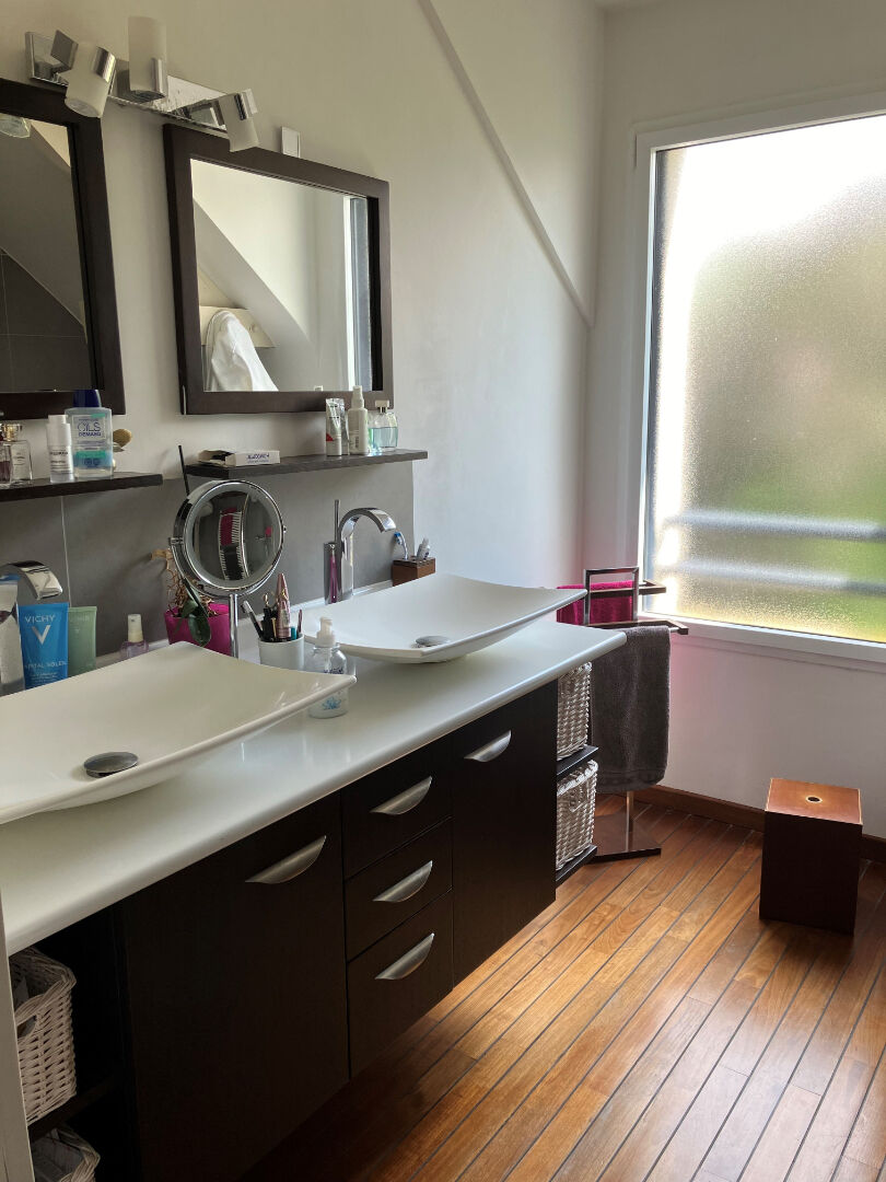 Thorigné-Fouillard , Au calme dans une impasse, superbe maison "Elian" contemporaine de 7 pièces comprenant: Au rez-de-chaussée, une entrée avec placard, une vaste pièce de vie lumineuse exposée sud et ouest, une cuisine aménagée et équipée ouverte, une chambre, une salle d'eau, wc, une arrière cuisine cellier, garage. A l étage: un grand palier bureau, trois chambres, une suite parentale avec terrasse, dressing et salle d'eau avec wc privatif, une seconde pièce d'eau avec douche et baignoire, wc. Jardin sud et ouest. Belles prestations (brique BGV, Chauffage au sol au rdc...) Notre avis: une maison confortable et très bien conçue A voir rapidement! (4.12 % honoraires TTC à la charge de l'acquéreur.)