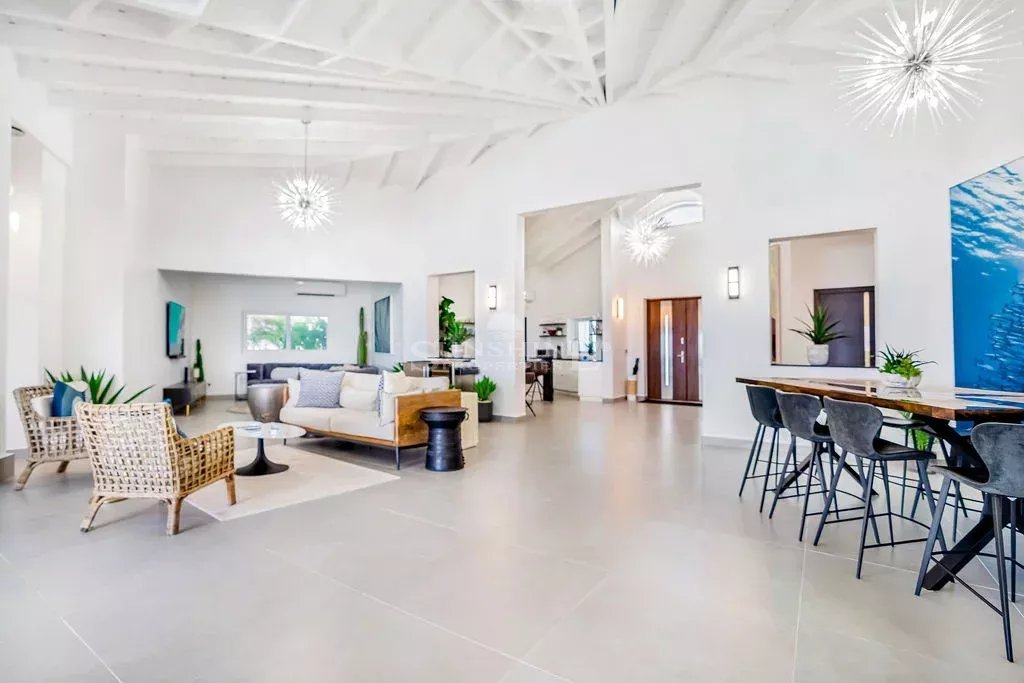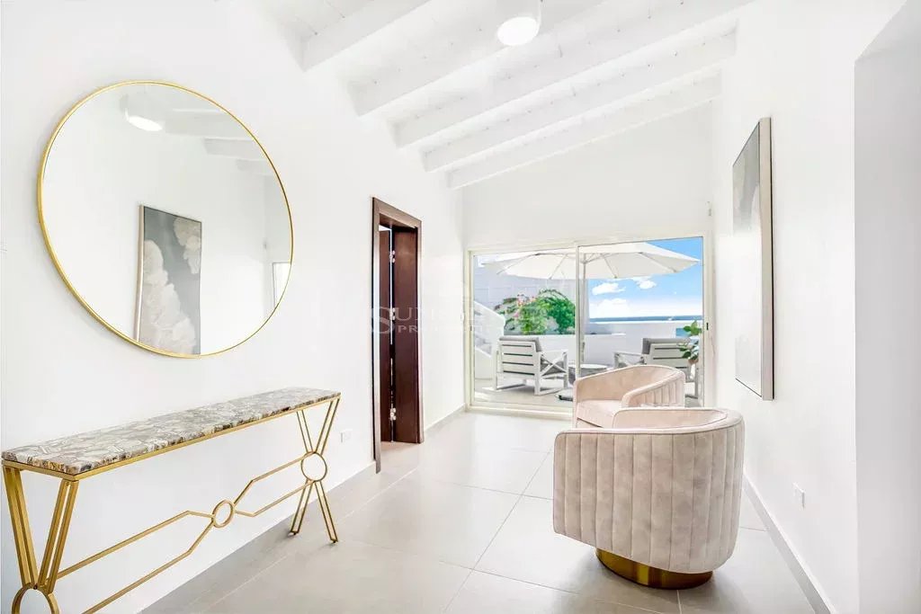Séjournez avec style et luxe dans cette villa de huit chambres située du côté néerlandais de Saint-Martin, perchée sur la péninsule de Pelican, entourée de magnifiques montagnes et offrant des vues imprenables sur les océans Caraïbes et Atlantique. (La villa offre également une vue sur les îles caribéennes de Saint-Eustache et Saba). Ce complexe côtier contemporain, entièrement clos, dispose d'équipements dignes d'un complexe hôtelier, offrant un luxe ultime, intimité, confort et une ambiance insulaire.