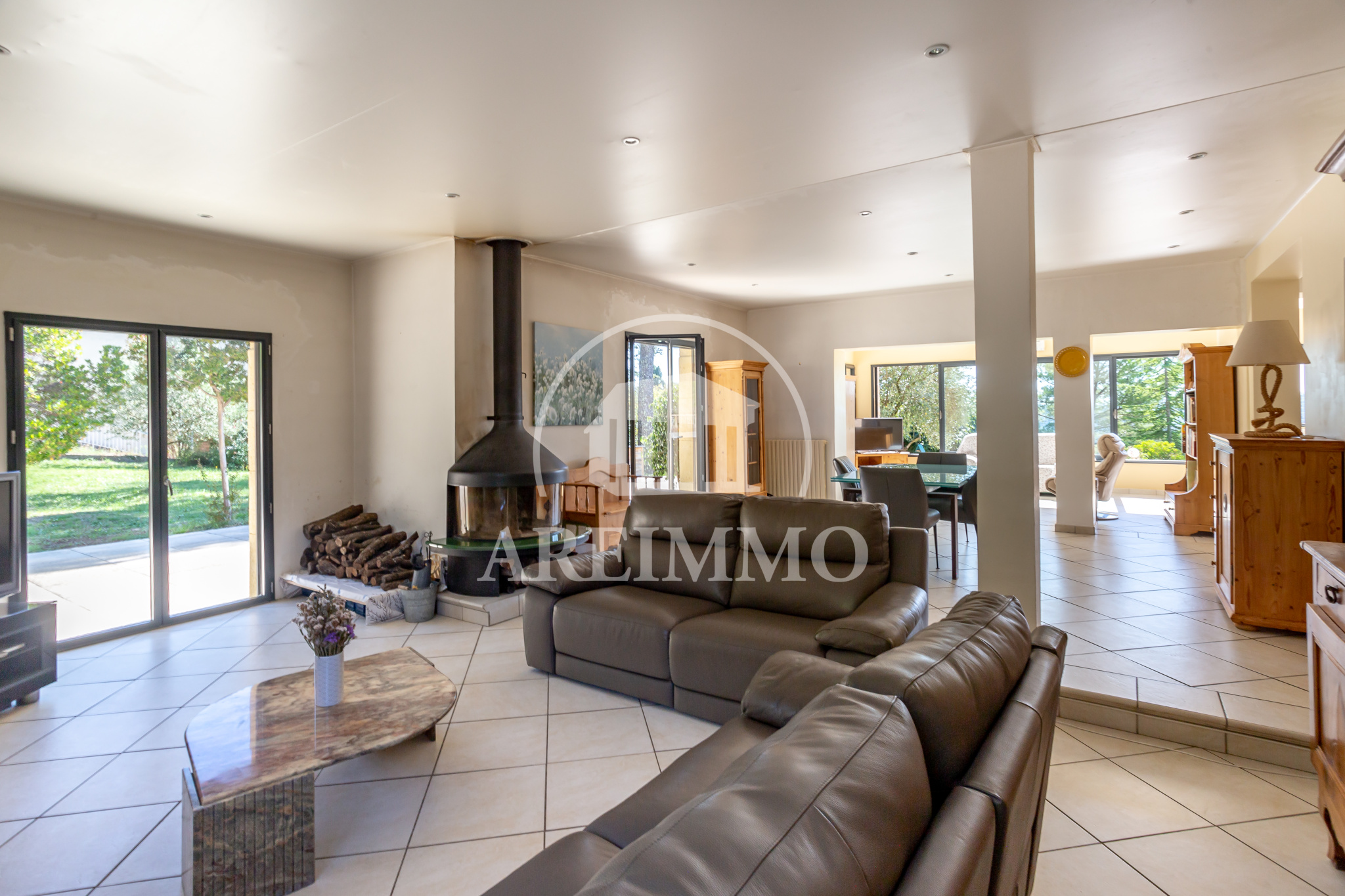 Cette élégante maison, entièrement de plain-pied, mêle avec goût le charme de l'ancien et le confort moderne. Elle est implantée sur une belle parcelle de 2000 m2, avec une vue à couper le souffle.