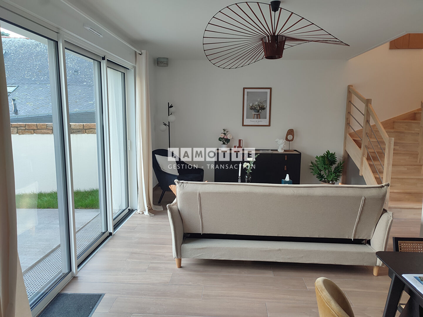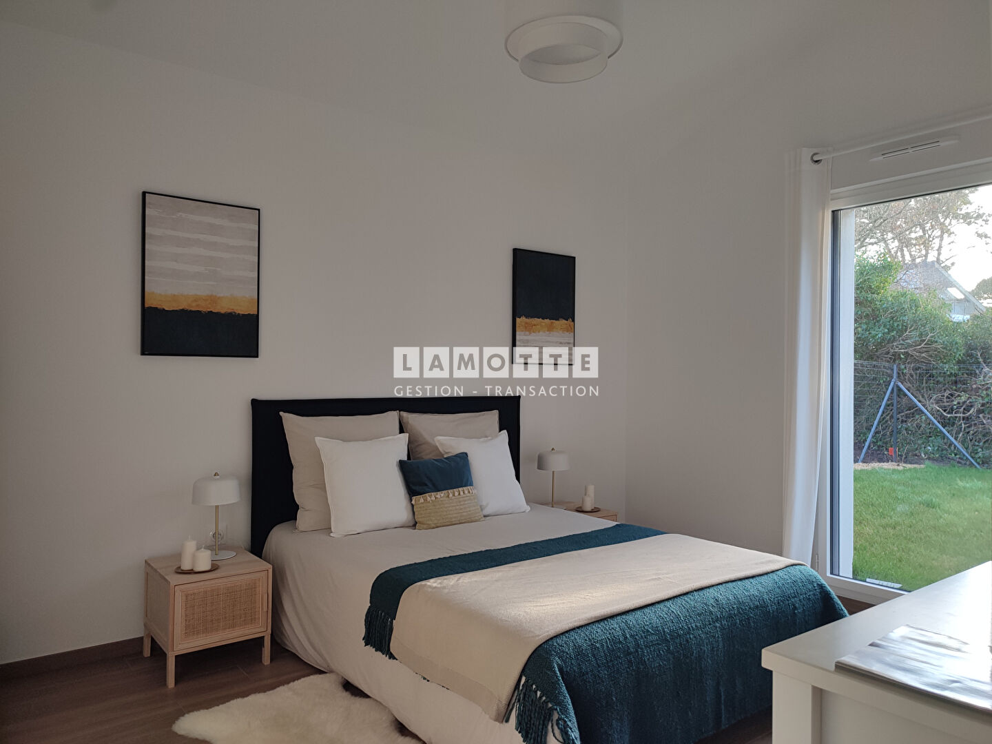 RARE, SITUATION IDYLLIQUE ! Dans un environnement privilégié et recherché, accès direct à pied du port de LARMOR BADEN et du passage de l'île de BERDER. LAMOTTE TRANSACTION vous propose cette maison neuve de Type 5 qui sera livrée au 4ème trimestre 2026 d'environ 105 m² habitables, à seulement 500 m du centre bourg et du port de plaisance. Elle vous propose une véritable vie de plain pied ! En rez-de-jardin côté sud, une pièce à vivre avec une cuisine aménagée et équipée d'environ 35 m² donnant sur une terrasse d'environ 15 m² et un jardin clos et végétalisé. Une vaste entrée avec placard, une chambre parentale avec une salle d'eau et un toilette séparé. Au premier étage, un palier desservant trois chambres dont une avec placard, une salle de bains avec une baignoire et un toilette séparé. Un garage et deux places de stationnement complètent ce bien ! Arrêt de bus "Larmor Baden Centre", ligne 23 pour rejoindre le centre ville de Vannes Pompe à chaleur air-eau : plancher chauffant au rez-de chaussée, radiateurs à eau chaude à l'étage. Conduit de cheminée pour installation future d'un poêle à bois ou granulés, Menuiseries aluminium Profitez des avantages du neuf : performances énergétiques et acoustiques aux dernières normes, garanties jusqu'à 10 ans après l'achat. Copropriété de 16 lots - dont 16 lots habitation.