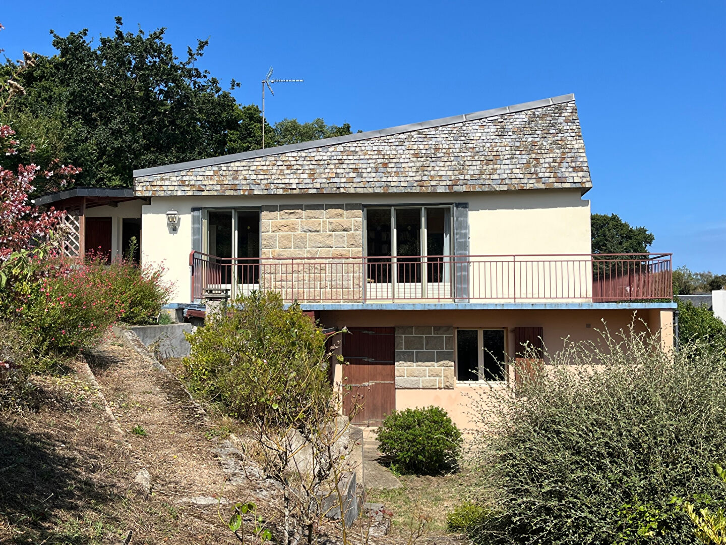 Votre agence Kassiopée Services Immobiliers, vous présente : Construite en 1983 par ses propriétaires actuels, cette maison au style néo-breton se distingue par la qualité de ses matériaux et le soin constant apporté à son entretien. Édifiée sur un terrain constructible de 1370 m², elle propose une vraie vie de plain-pied avec un hall d'entrée élégant, une pièce de vie lumineuse avec cheminée, une cuisine indépendante, une chambre, un bureau et une salle d'eau. L'étage accueill