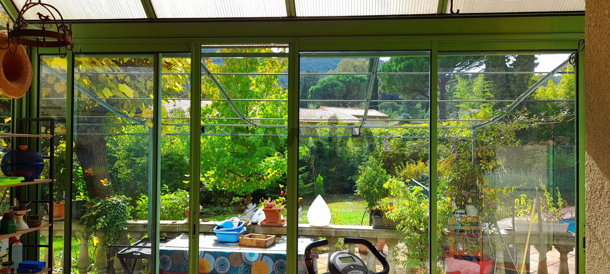 PLAIN PIED en rez-de-jardin : Cuisine semi-ouverte sur grande pièce de vie et belle VÉRANDA de 15 m2, exposition SUD-OUEST bénéficiant d'une belle vue et de beaucoup de lumière.