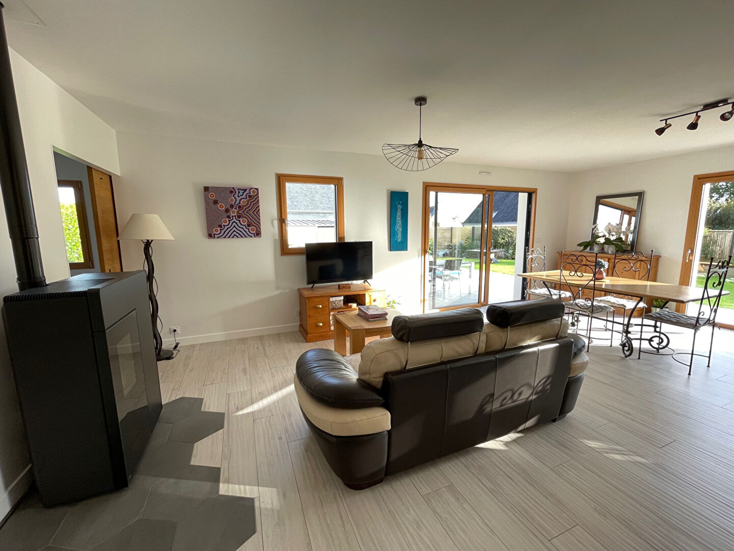 Au calme, les commerces et les écoles du bourg à pied. Contemporaine de 138 m² sur un terrain clos de 530 m² avec piscine et cabanon. Entrée ouvrant sur une grande pièce de vie avec cuisine ouverte, équipée et aménagée avec ilot centrale. Ambiance lumineuse et cosy. Une grande porte à galandage ouvrant sur la chambre parentale avec dressing et Sdd privative. Wc séparé et une buanderie avec vestiaire. A l'étage : Trois chambres dont une avec balcon. Une salle de bains avec douche et wc. Vaste garage permettant de stocker. Une maison sans travaux et agréable à vivre (2.08 % honoraires TTC à la charge de l'acquéreur.)
