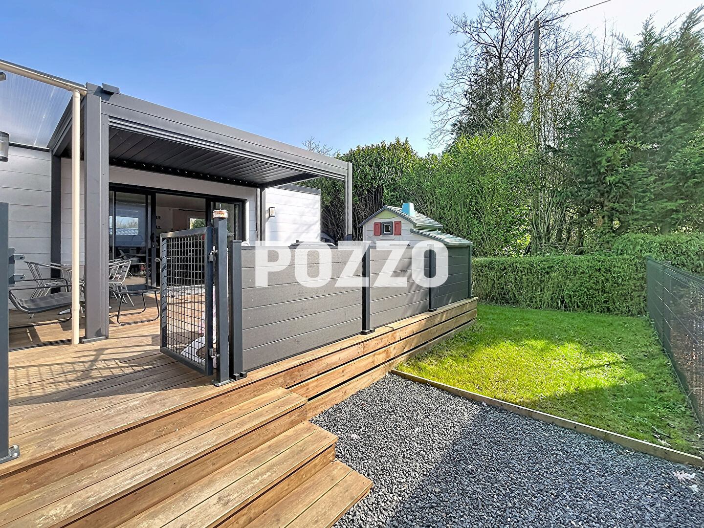 L'agence Pozzo de Douvres-la-Délivrande vous présente en exclusivité . Chalet récent de 2023 en excellent état, implanté à Ouistreham sur un terrain de 225 m² en pleine propriété, au sein d'un parc résidentiel de loisirs sécurisé. Construit pour privilégier le confort et la durabilité, il offre une terrasse exposée plein sud équipée d'une pergola bioclimatique, un abri jardin et la possibilité de stationner jusqu'à trois véhicules directement sur le terrain. Ce chalet offr