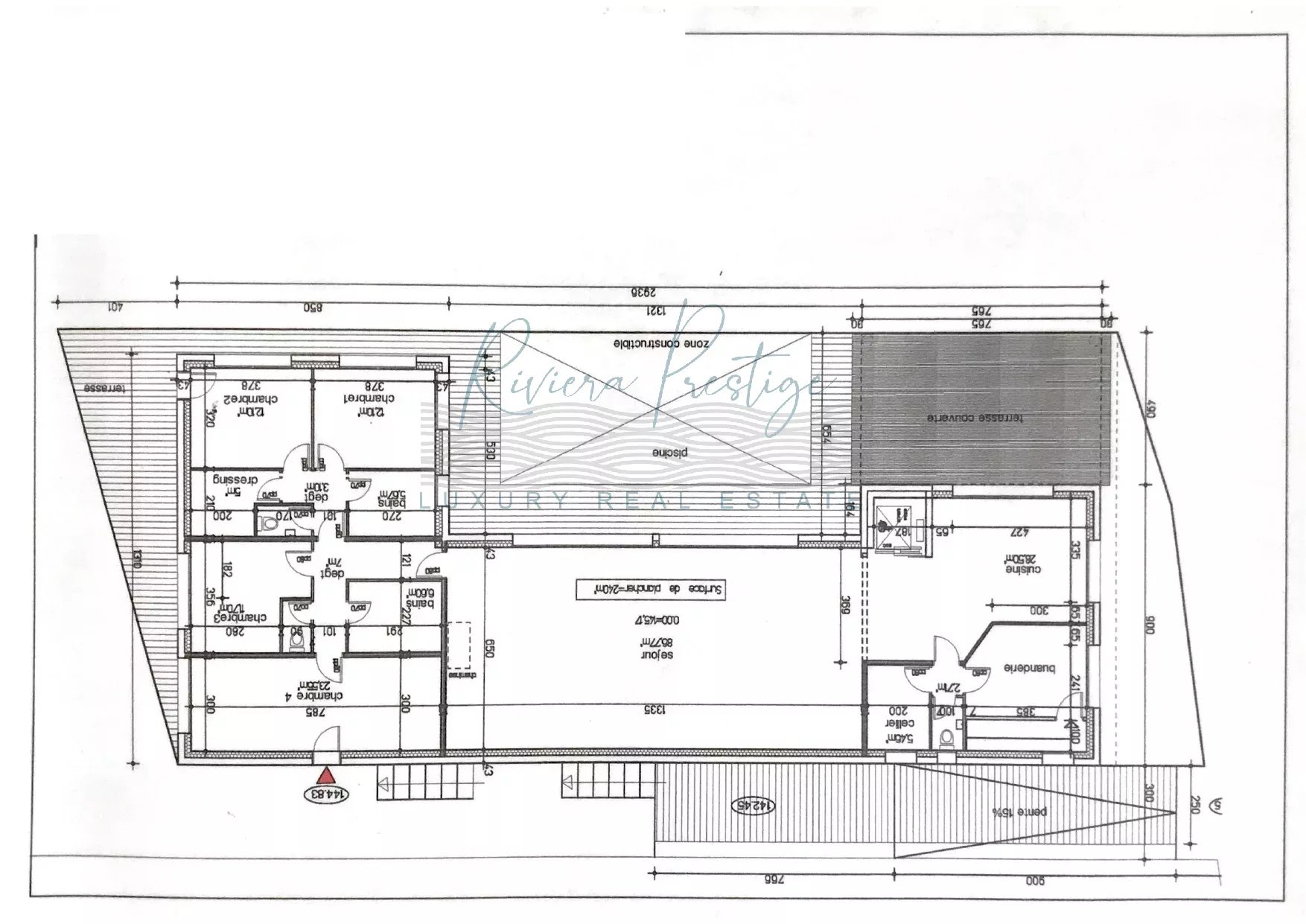 Terrain plat constructible de 2 775 m² situé à Mouans-Sartoux, bénéficiant d’un permis de construire purgé. Ce terrain rare sur le marché est proposé avec un permis accepté pour une villa passive contemporaine de 240 m², incluant déjà un sous-sol de 131 m² réalisé. Le projet initial prévoit une villa moderne avec une cuisine, un cellier, une buanderie, un vaste séjour de 80 m², cinq chambres, deux salles de bains, ainsi qu’un sous-sol pouvant accueillir jusqu’à cinq voitures, équipé d’un ascenseur pour un accès direct à la villa. De plus, le permis inclut la construction d’une piscine de 10 x 5 mètres. Le terrain est libre de constructeur, offrant ainsi la possibilité d’adapter le projet selon vos envies. Idéalement situé à proximité des axes routiers et des commodités, ce terrain offre un cadre de vie privilégié. Plans et documents complémentaires disponibles sur demande. Une opportunité à ne pas manquer !