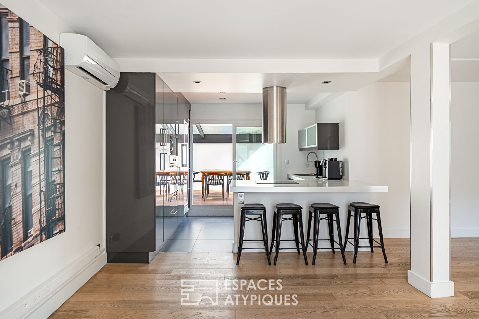 A Asnières, quartier Alma, ce duplex calme et lumineux de 178 m² au sol (115,03 m² Carrez) s'inscrit dans une petite copropriété de trois lots à faibles charges. Situé au premier et dernier étage, il se distingue par ses volumes généreux, son agencement familial et ses espaces extérieurs privilégiés : un balcon de 13m² et une terrasse de 22 m² sans vis-à-vis. Le premier niveau accueille une pièce de vie de plus de 42 m², baignée de lumière, dont la climatisation garantit un c