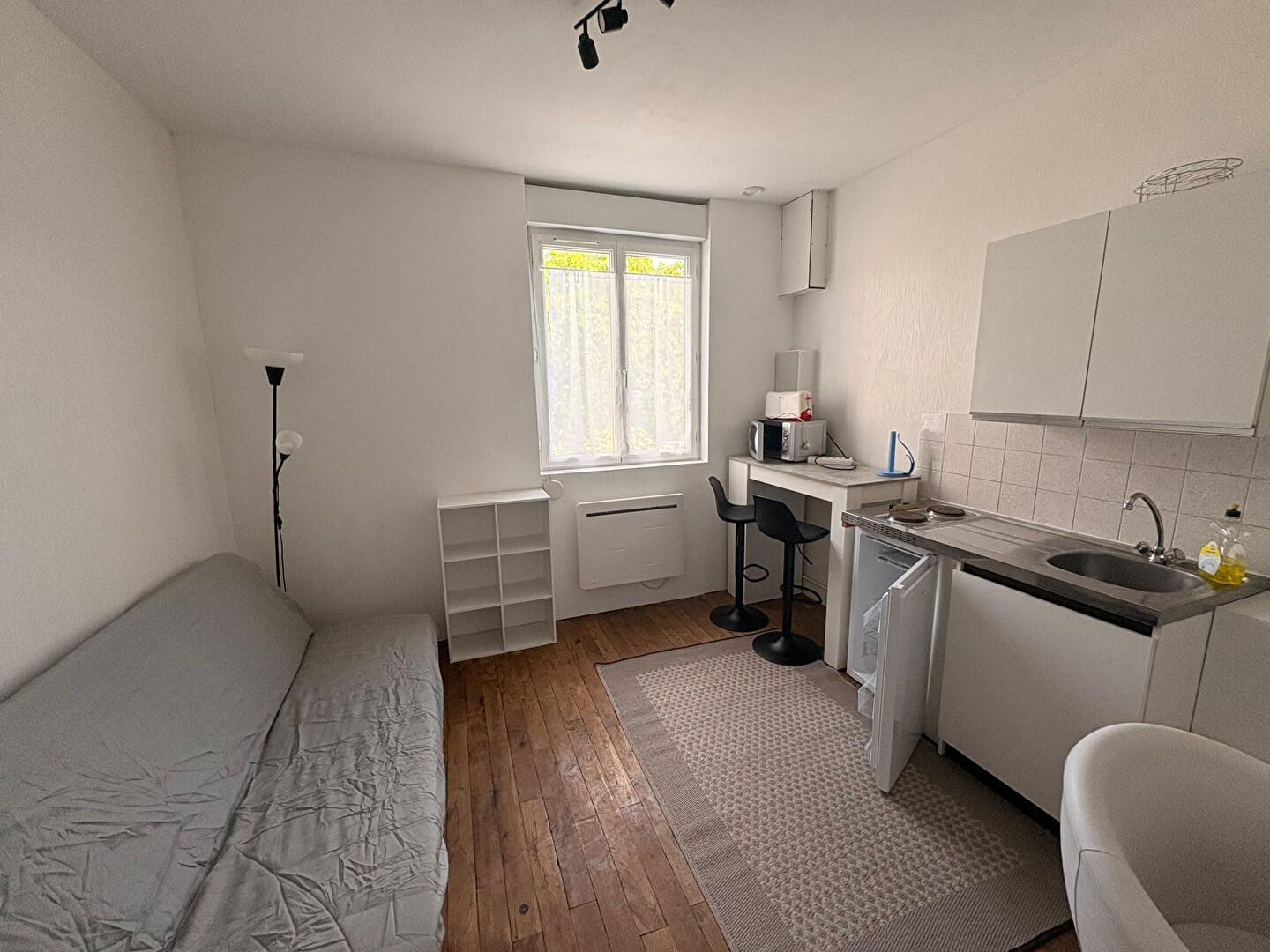QUARTIER PREBENDES - STUDIO MEUBLE Disponible de suite ! Proche de la faculté et à proximité des transports et des commerces. Studio meublé de 15.73m² entièrement équipée idéale pour jeune étudiant ou jeune actif. Situé au 1er et dernier étage d'une petite copropriété donnant sur une cour intérieur dans une rue calme dans le quartier des Prébendes. Chauffage et eau chaude individuels électriques Les charges comprennent : eau froide, entretient des communs et TOM. Loyer CC