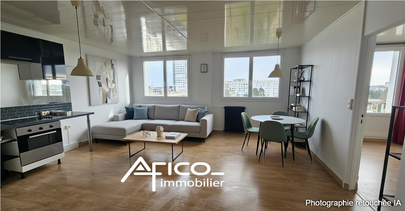 Vue sur le Cher - Appartement T2 d'environ 46 m², situé au 7ème étage, exposé Est, comprenant : entrée avec placard, séjour avec cuisine ouverte, chambre et salle d'eau avec WC. Chauffage et eau collectif. Local à vélo. Proche tram et bus. Disponible de suite.