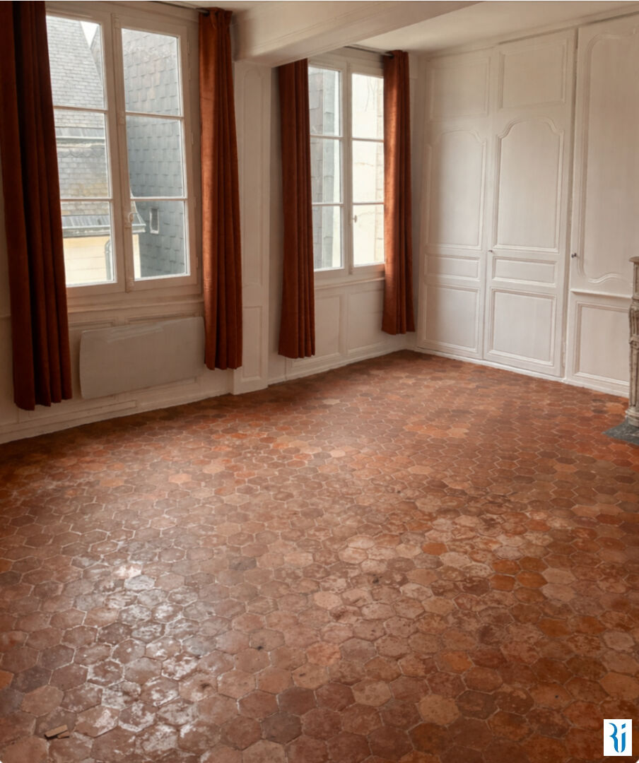 Au calme, en plein coeur du Rouen historique, découvrez ce T1 de 46?m² au 2? étage d'une petite copropriété. Superbe pièce de vie lumineuse avec cheminée, tomettes et boiseries, cuisine indépendante, salle d'eau avec WC. Une pièce annexe polyvalente de 7,5?m² avec placard complète l'ensemble (idéal bureau, dressing ou coin nuit). Débarras privatif au rez-de-chaussée. Bien proposé par Sofia Loukili (EI) agent commercial (rsac981390396) les informations sur les risques auxquels ce