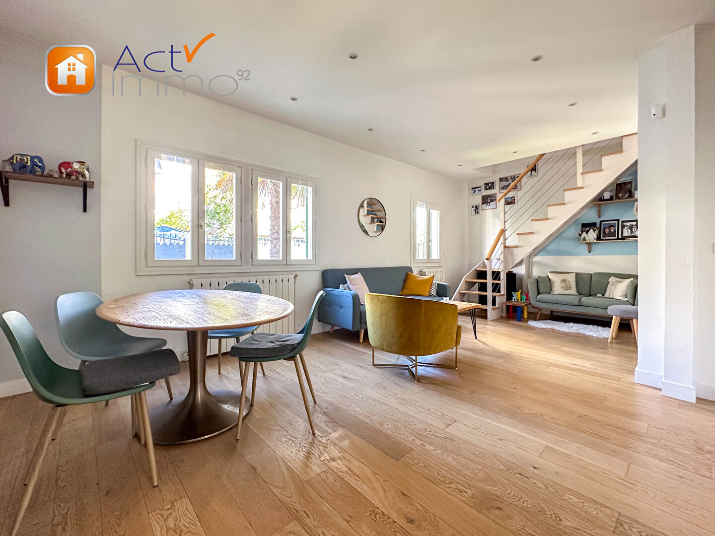 Exclusivité LES AGENTS DE L'IMMOBILIER COLOMBES Centre-ville - 7 min Gare du centre et à 5 min des commerces de la Rue Saint Denis. Charmante maison des années 2000 donnant sur un petit jardin calme et sans vis-à-vis. Comprenant au RDC : Double séjour 30m², grande cuisine / véranda (16.50m²) donnant sur une terrasse arrière, WC. Au 1er étage : palier, 2 chambres dont 1 avec placard, 1 salle de bains et WC séparé. Au 2éme sous combles : suite parentale avec salle de bains et WC. Sou
