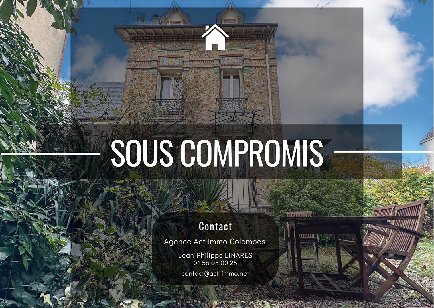 - SOUS COMPROMIS DE VENTE - L'agence Act'Immo vous présente en EXCLUSIVITÉ à Colombes dans le secteur Champarons-Guerlain, proche des transports et des bonnes écoles. Sur un magnifique terrain clos de 518m² sans aucun vis-à-vis, une jolie maison de caractère de 6 pièces, une dépendance et un garage. La maison principale comprend, une entrée, un beau séjour avec cheminée (insert), une salle à manger, une grande cuisine aménagée et équipée, 4 grandes chambres, un large palier pouv