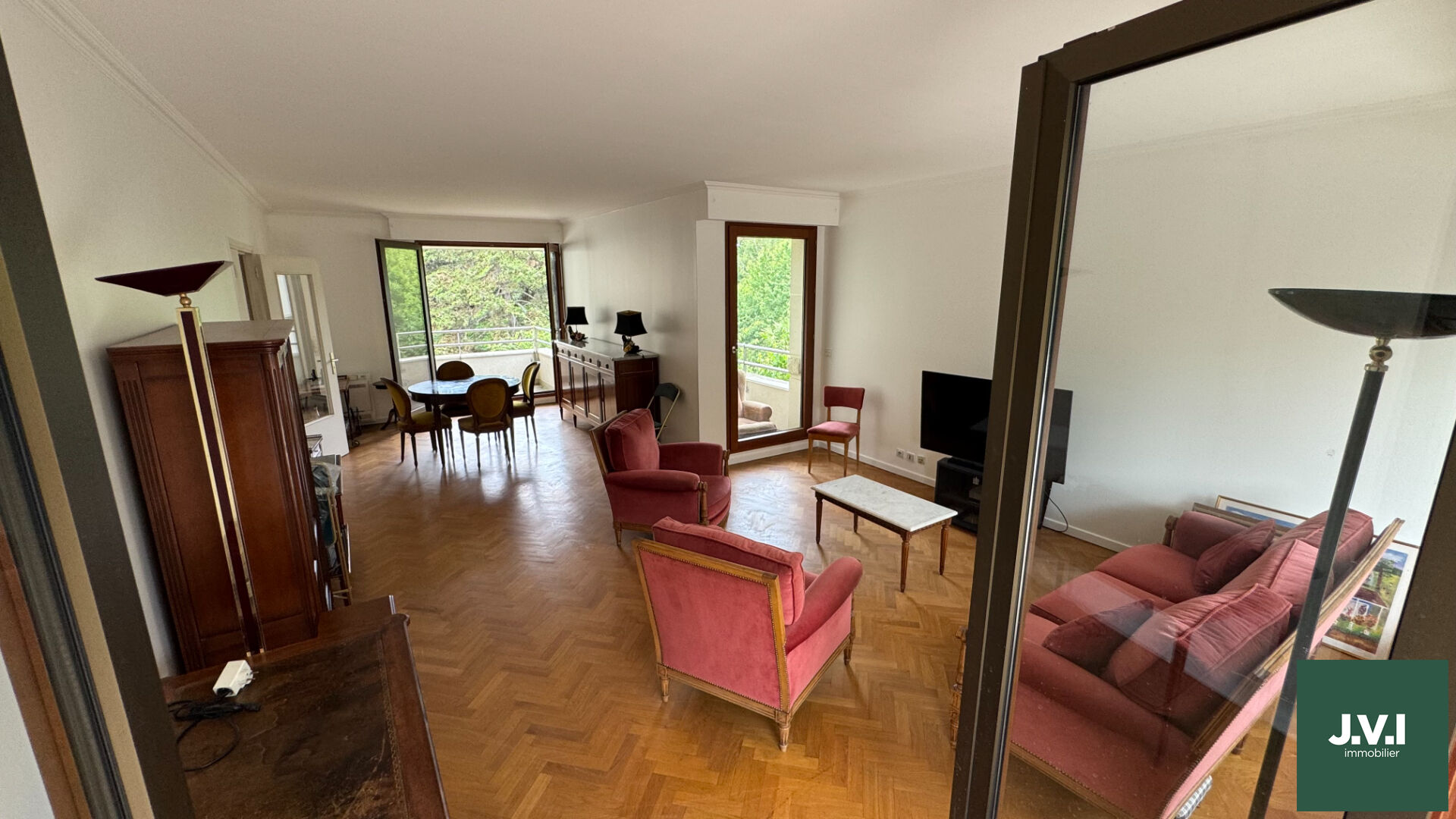 A VENDRE Enghien lac proche centre et gare, appartement 5 pièces 112 m² entièrement refait, au calme dans petite copropriété, offrant : Vaste séjour lumineux de 39 m² avec cheminée accès terrasse et jardin (environ 50 m² au total) sans vis à vis exposés sud ouest profitant d'une vue dégagée sur le Lac, cuisine équipée, cellier (garde manger), 3 chambres, salle de bains et salle d'eau, nombreux placards de rangements. Cave, 2 parkings côte à côte. Environnement privilégié, la